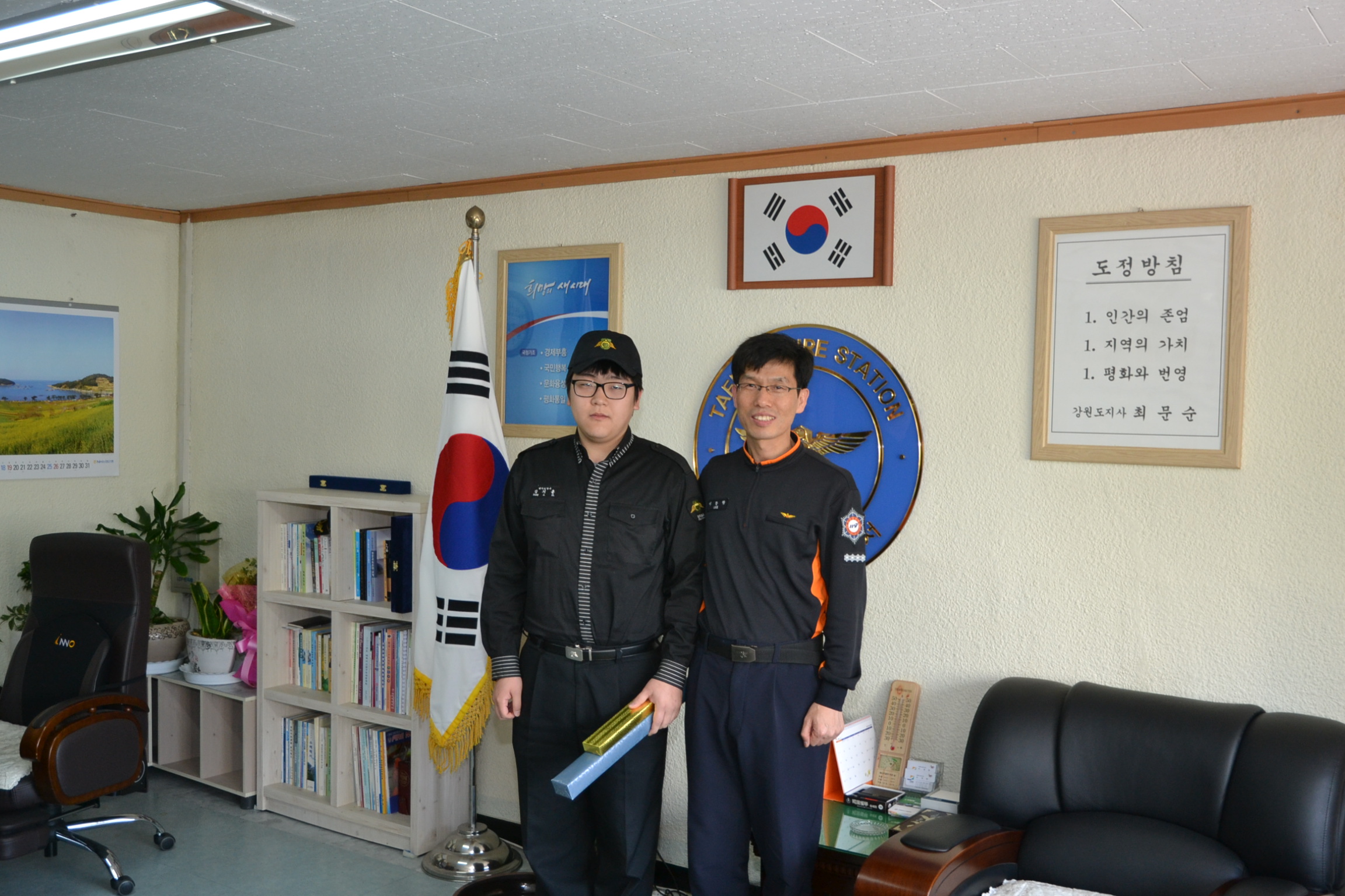 태백소방서(서장 이동학)는 8일 오전 서장실에서 공익근무요원 강지훈에 대한 전역식을 가졌읍니다.