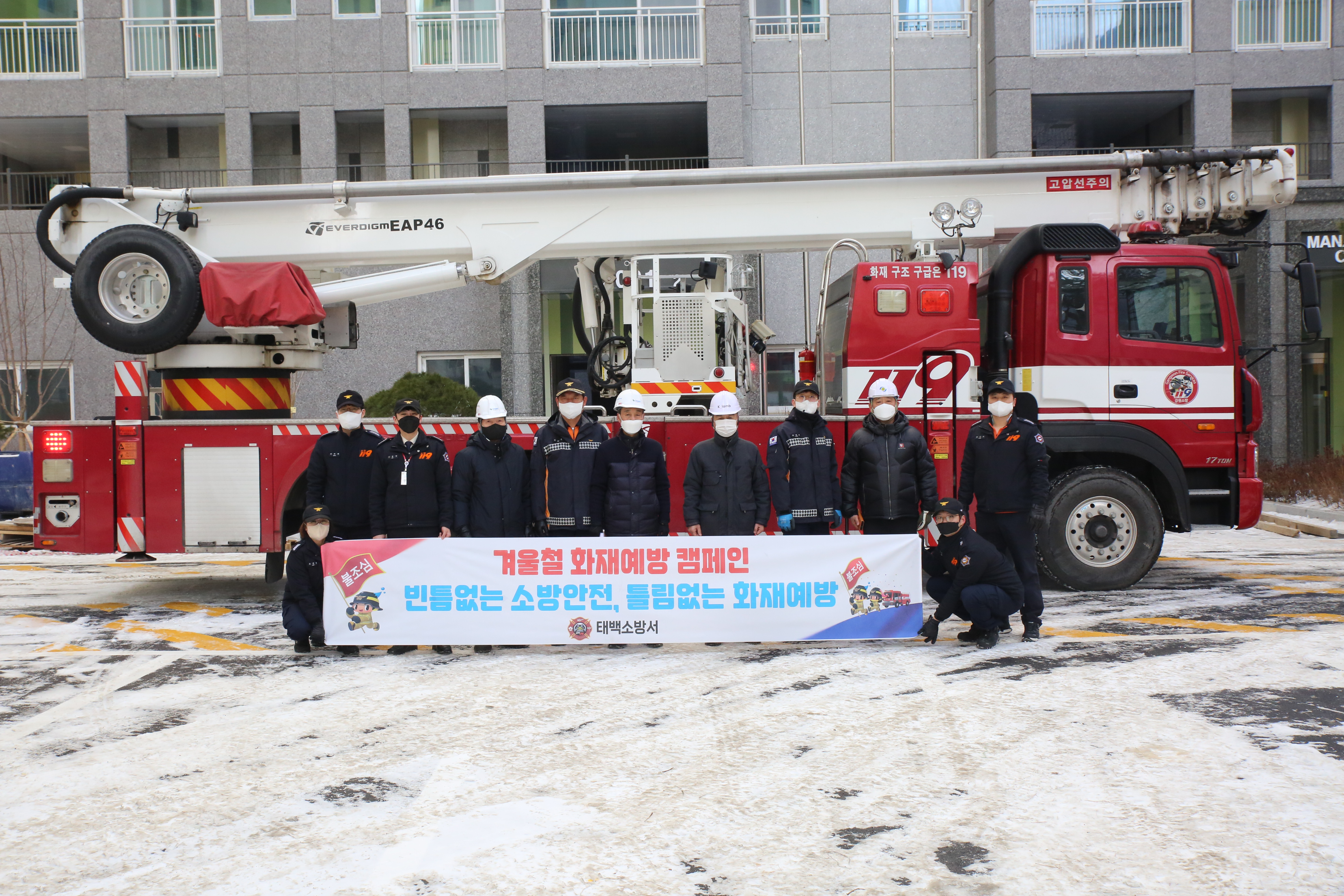 태백소방서(서장 김재석)는 3일 오전 10시 황지동 부영아파트 공사 현장에서 화재예방 캠페인과 소방안전교육을 실시했다.