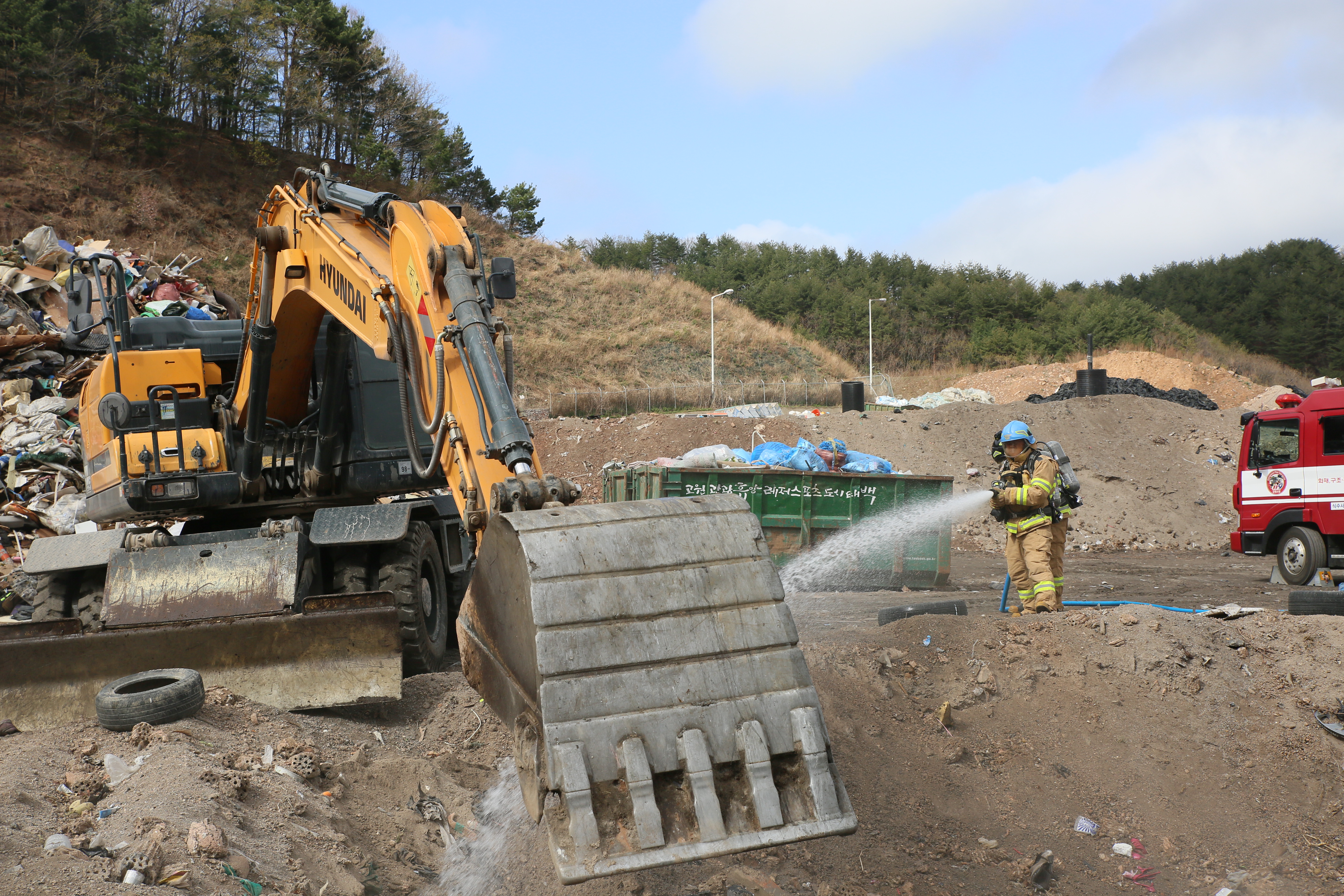 이번 훈련은 통동에 있는 태백시위생매립장에서 소방대원 15명, 태백시청 10여 명과 소방차량 등 차량 7대가 동원됐으며 ▲관계인들과 화재안전컨설팅 ▲출동 및 소방차 부서 ▲시설종류, 특성 및 장시간 진화작업 등을 반영한 화재진압 ▲중장비 활용한 관계기관 합동소방훈련 순으로 실시했다.