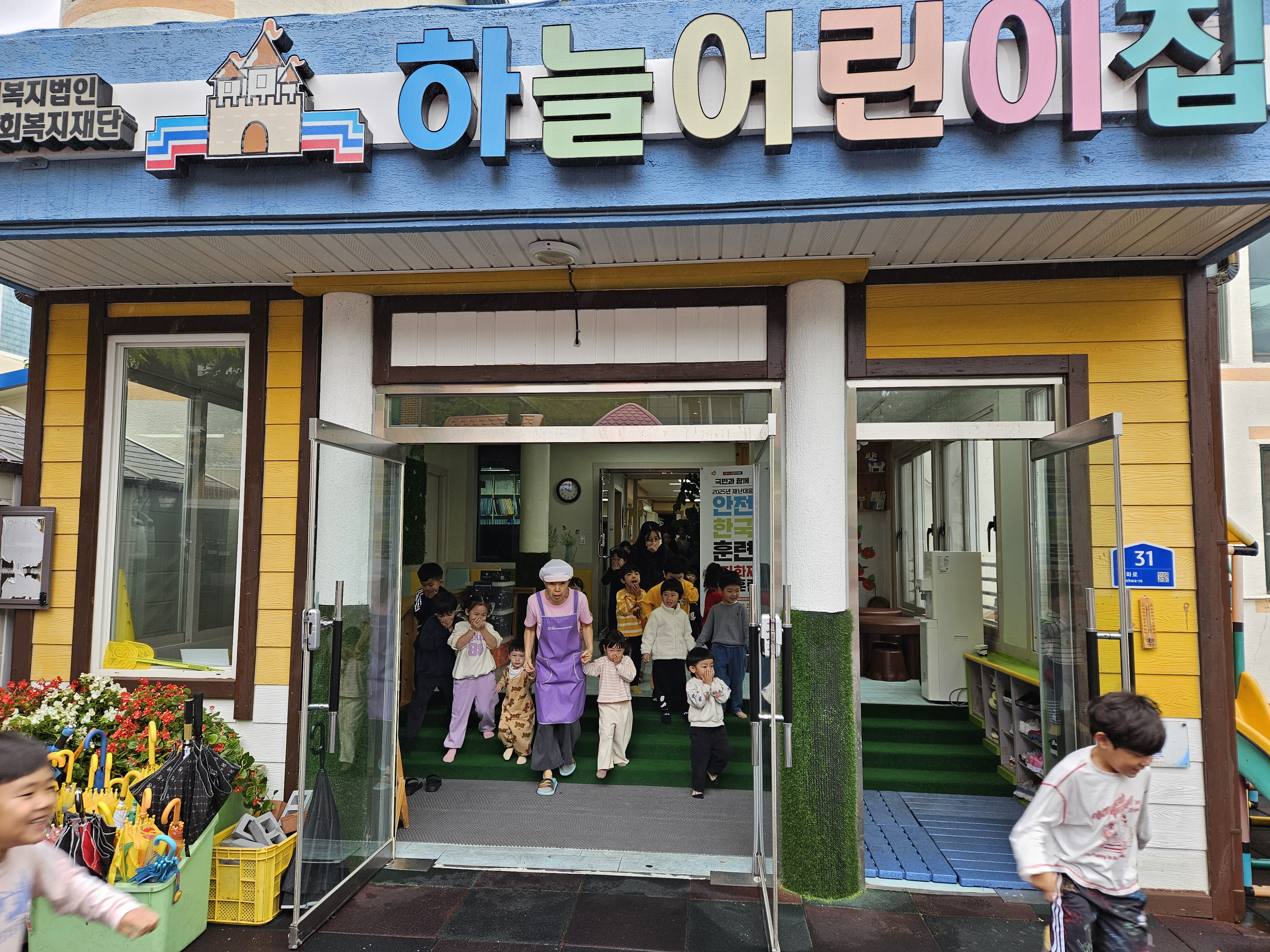 10월 22일, 태백시 안전과와 재난대응 안전한국훈련의 일환으로 하늘어린이집에서 원아들을 대상으로 화재대피훈련과 소화기 사용법 교육이 진행되었습니다.