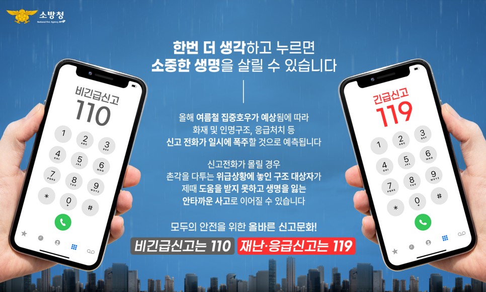 비긴급신고는 110! 재난 응급 신고는 119! 홍보