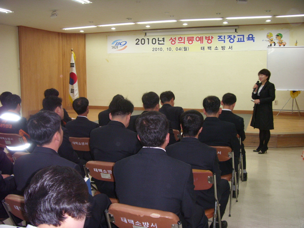 태백소방서(서장 여윤길)는 10월 5일(월) 오전 09시 30분 태백소방서 대회의실에서 백은주(정선군보건소 방문보건담당) 강사를 초빙하여, 성희롱 예방교육을 실시하였다.