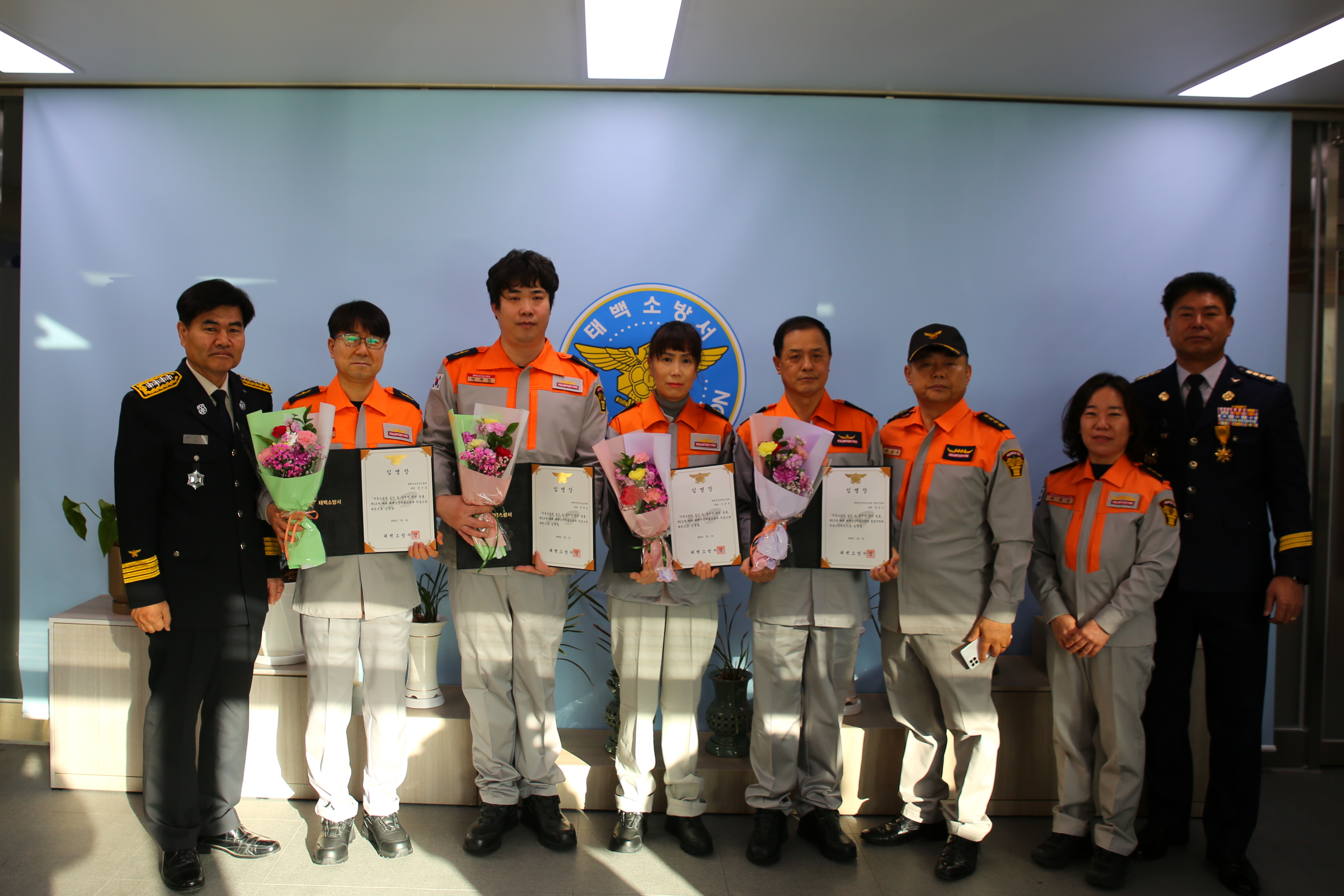 태백소방서(서장 심규삼)는 8일‘2026년 1분기 신규 의용소방대원 임명장