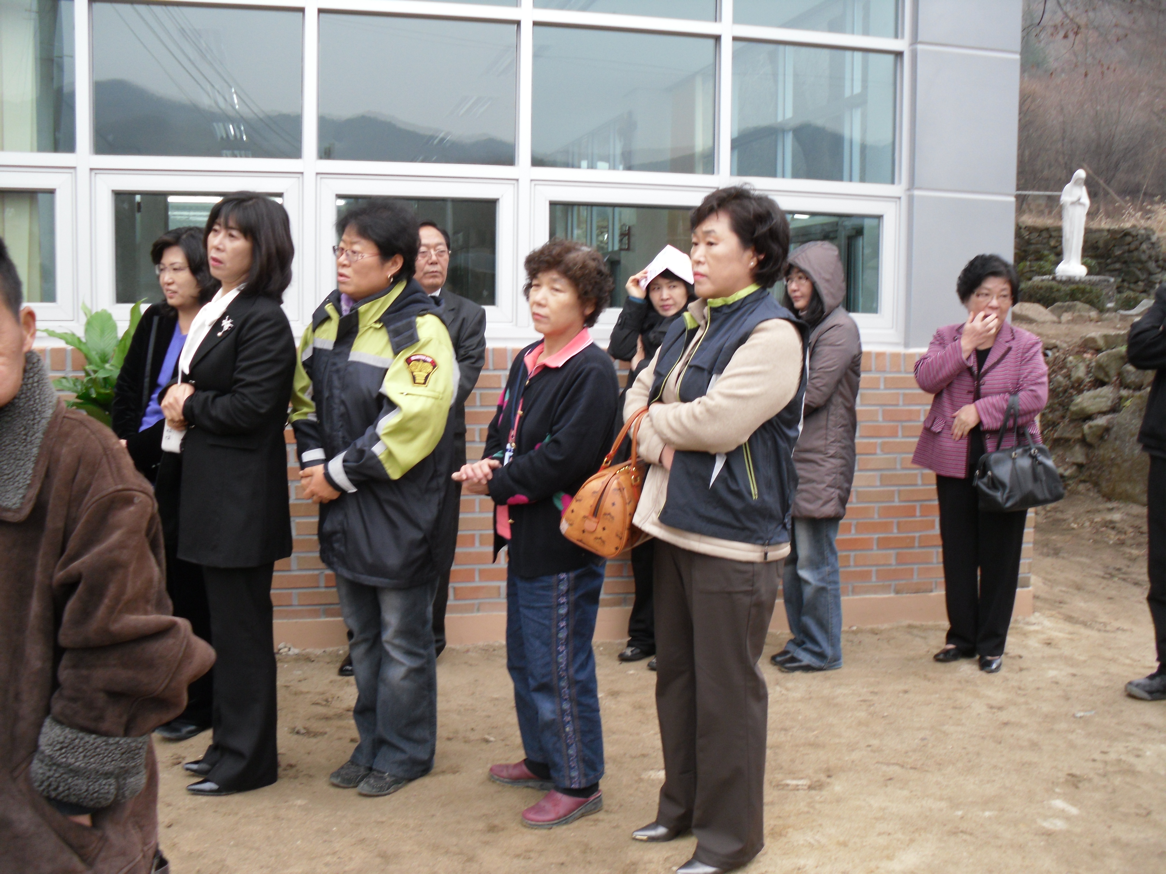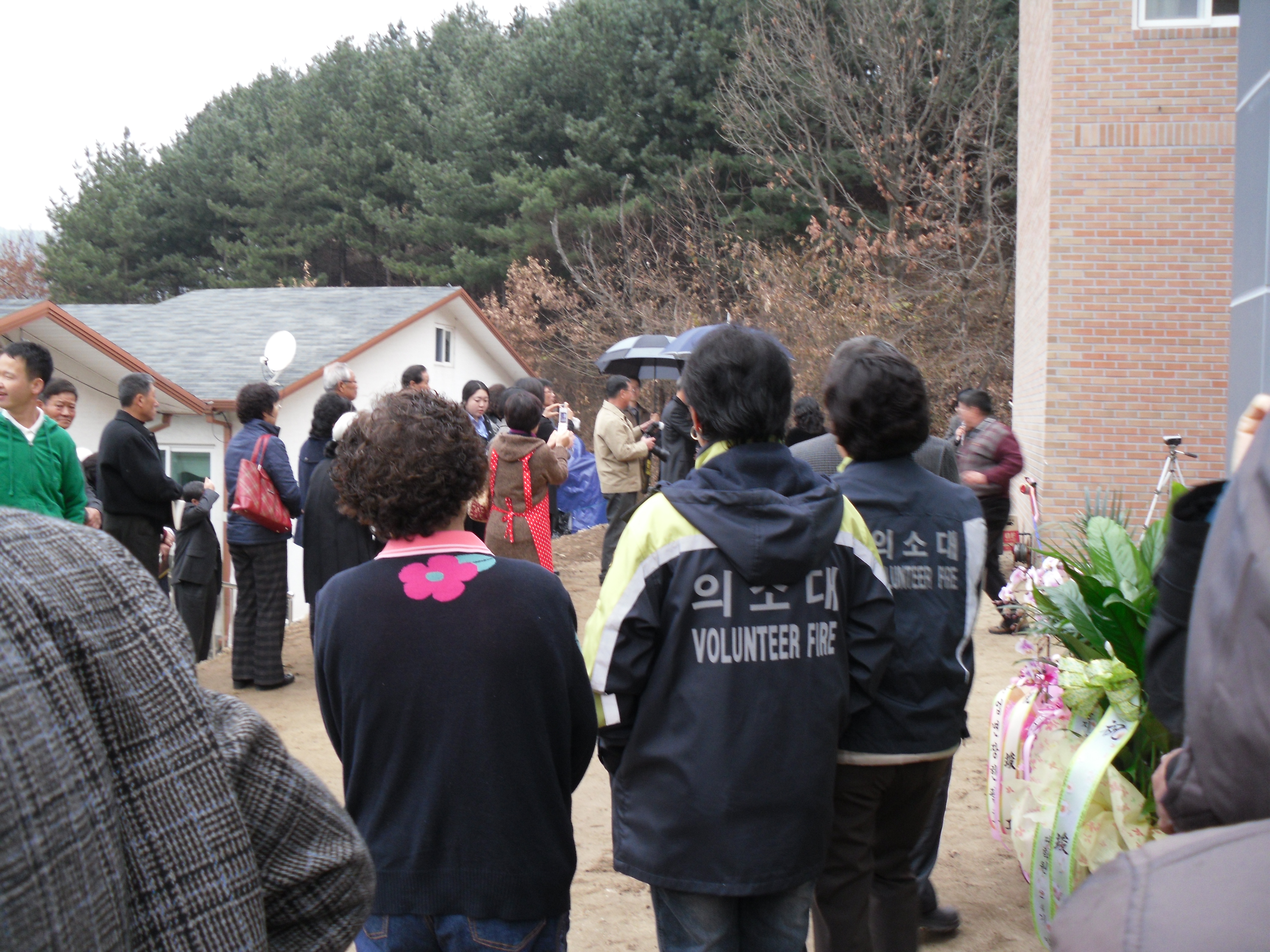 전국적으로 떠들썩한 신종플루와 아침부터 내리는 비때문에 행사는 간단히 치뤄졌지만 많은 분들이 오셔서 축하해주셨구요. 저희는 입주선물로 소화기 2대를 준비했는데 갈거리 팀장님께서 정말로 필요한 것이었다며 너무나 좋아하셨답니다.