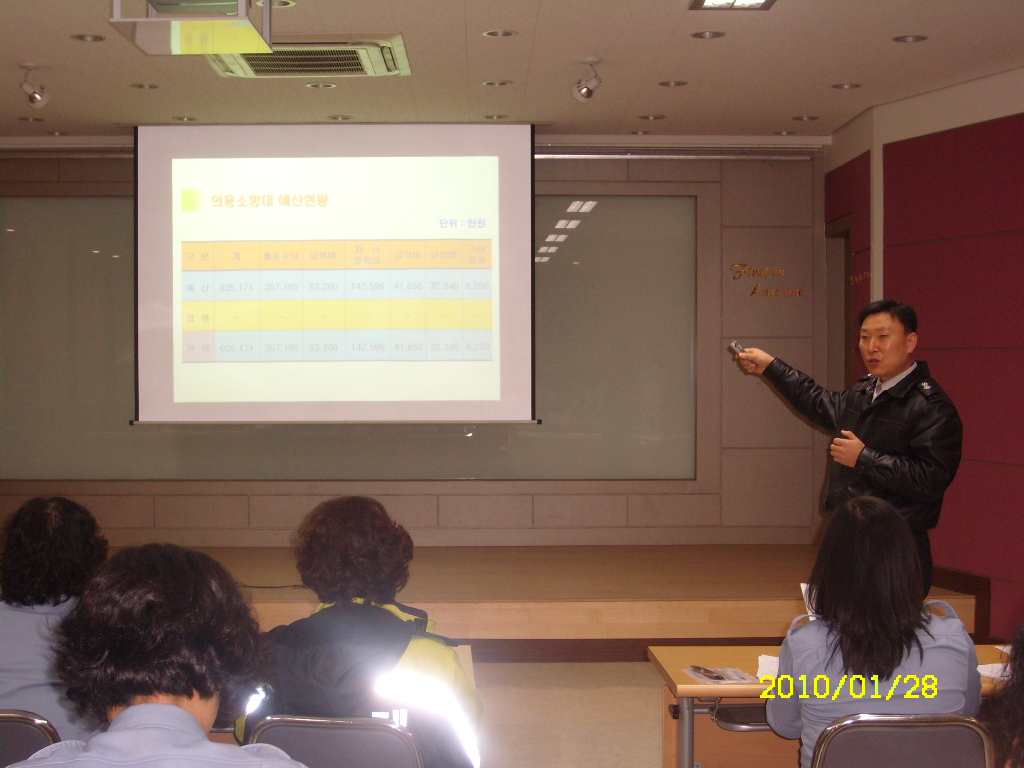 원주여성의용소방대에서는 2010년 1월 28일 (목) 원주소방서 대회의실에서 2010년도 제1차 월례회를 개최하였습니다.
