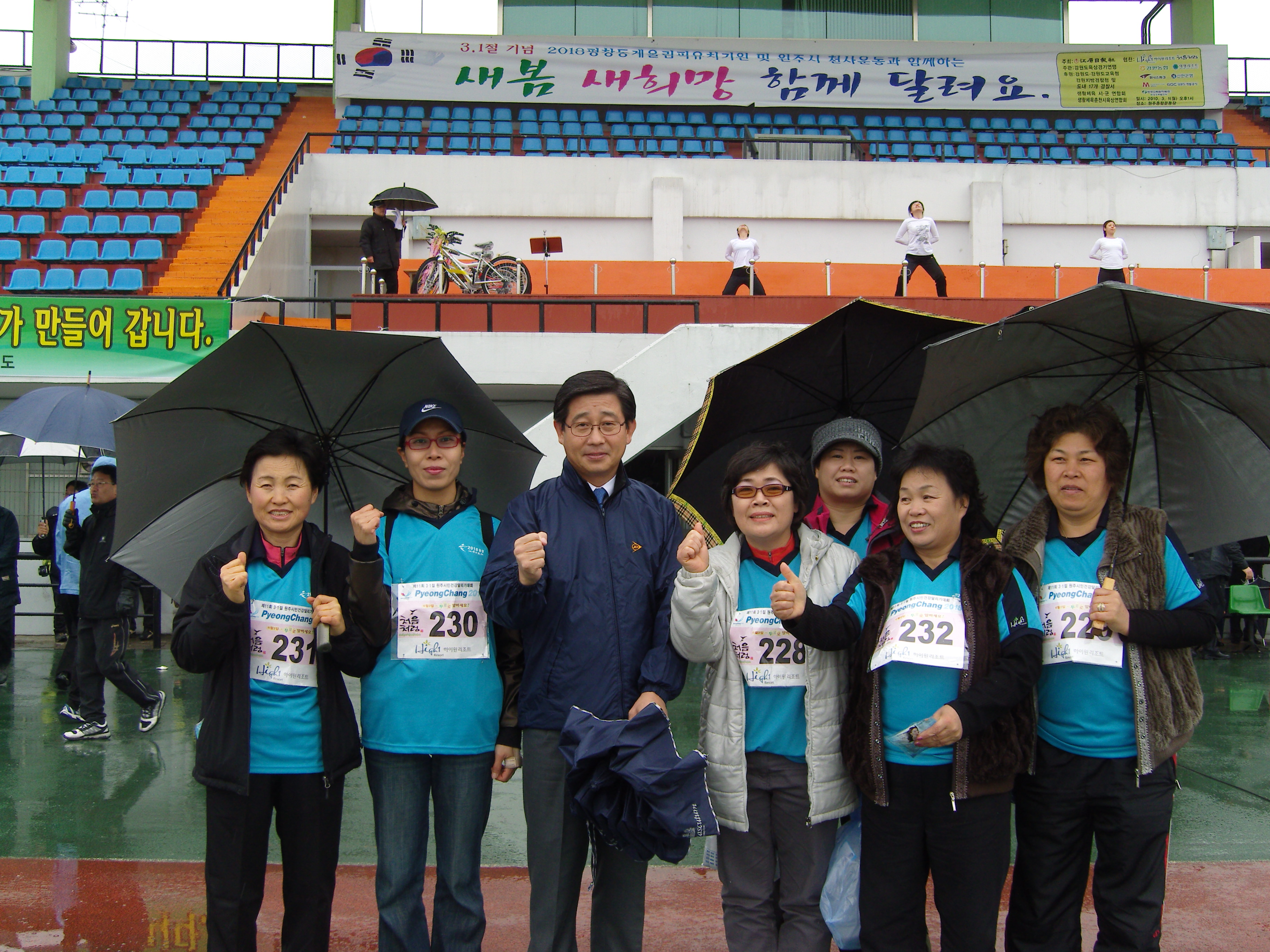 3월1일 흥업여성의용소방대(대장 오오석)에서는 삼일절 마라톤 달리기대회에 8명이 참가를 하였습니다. 우천속에서도 굴하지 않고 대회에 참가한 원주시민들을 보면서 다시한번 감격하지 않을수가 없었습니다. 뛰다가 걷다가 하면서 완주하여 들어와서 메달을 받으니 정말 기뻤습니다. 궂은 날씨속에 참가하여 행사를 빛내주신 흥업여성대원 여러분 고생 많으셨습니다.