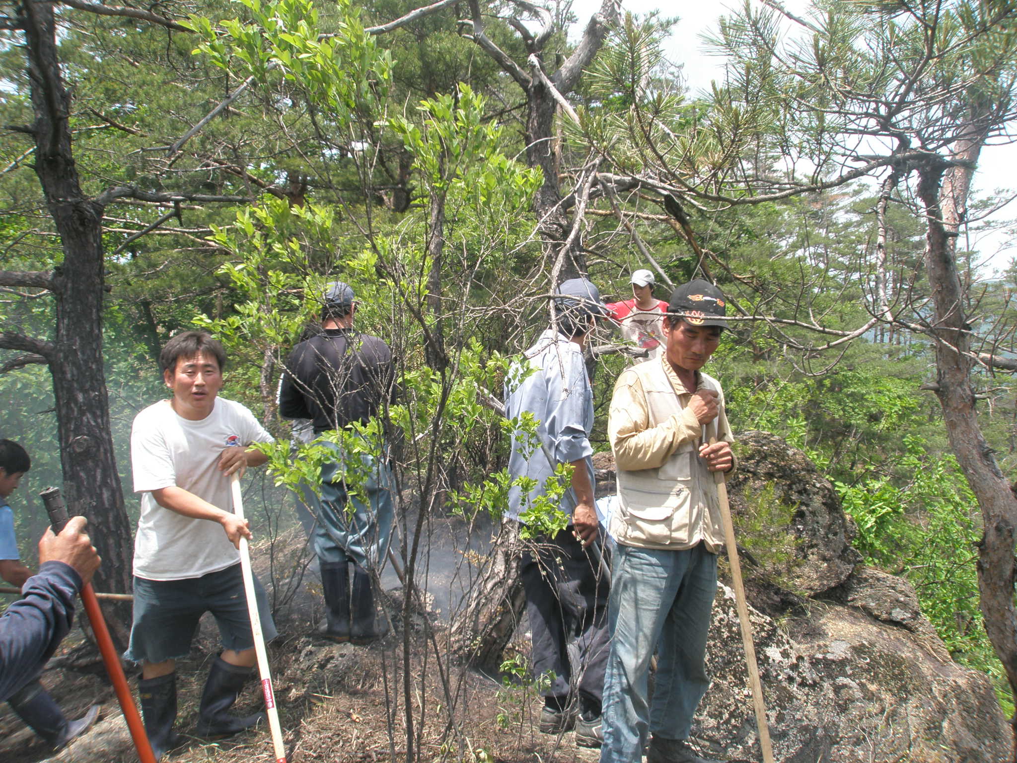 하며 잔불 정리 및 진압하였습니다. 우리 지역은 한창 농번기라 바쁨에도 불구하고 산불 진