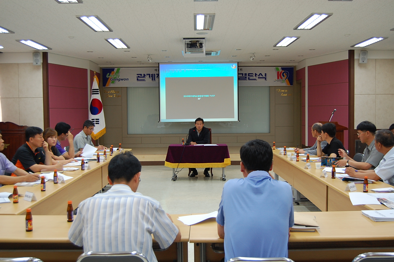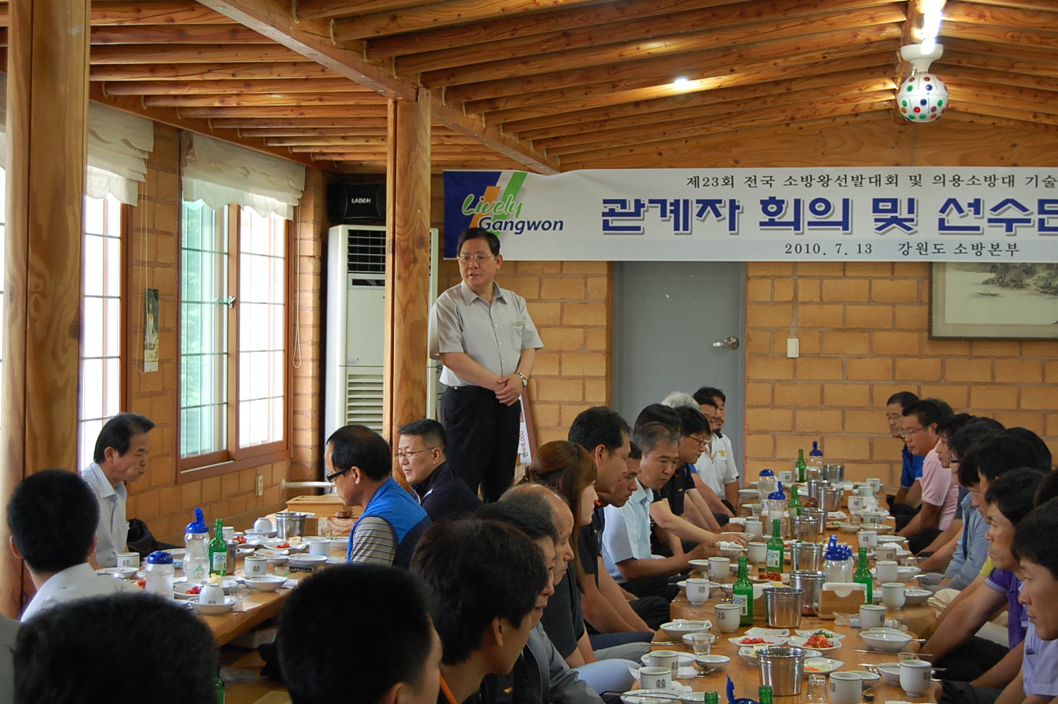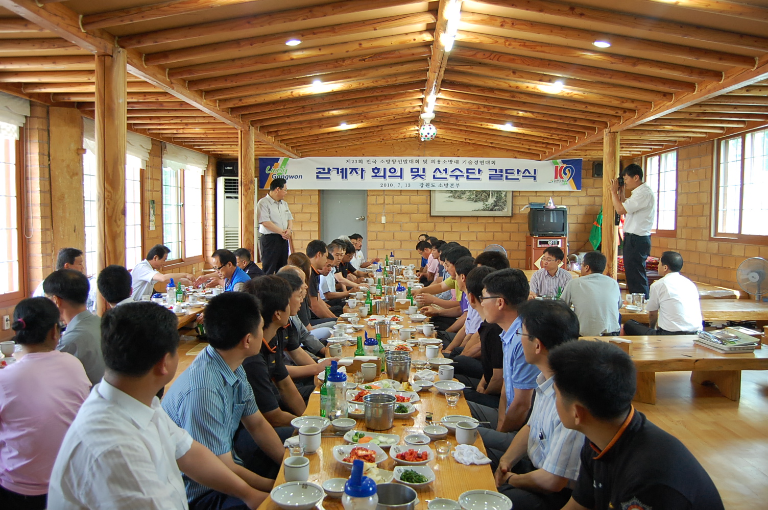 13일 강원소방본부(본부장. 왕재섭)는 원주소방서 대회의실, 원주시 흥업면 밤골식당에서 출전하는 선수들을 위한 결단식을 가졌습니다. 무엇보다도 인기가 있었던 종목은 드래곤보트였습니다. 동영상을 통해 알게 된 드래곤보트는 홍콩 앞바다에서 해마다 열리는 용머리 보트 시합이었습니다.