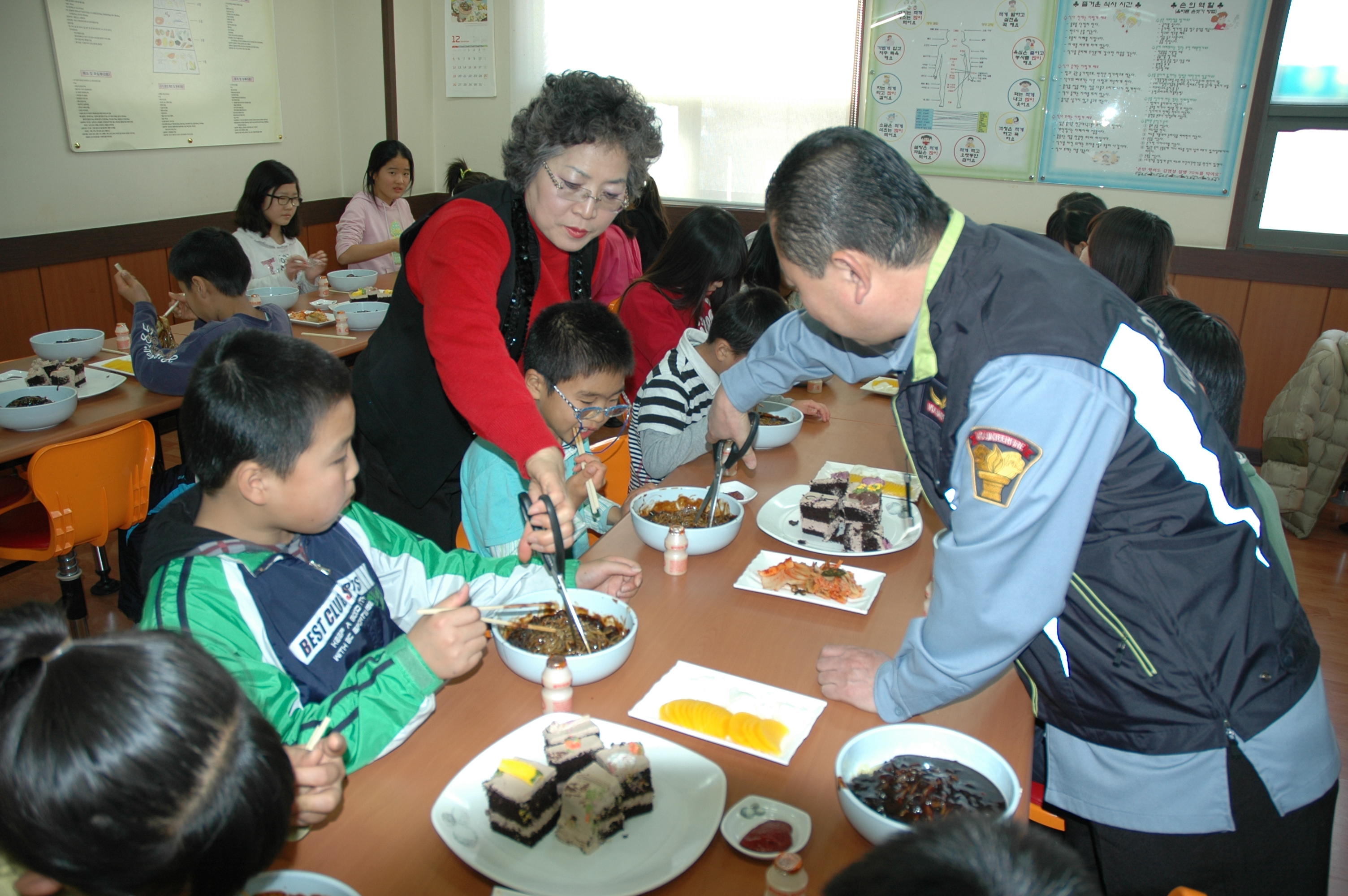 원주의용소방대(대장 조성일),원주여성의용소방대(대장 이현자)는 12월 24일 호저면 심향영육아원에서 의소대대원이 직접 만든 자장면을 원생 50명에게 제공했습니다. 이날 봉사에는 원주의용소방대 20명과 원주여성의용소방대15명이 참가했다
