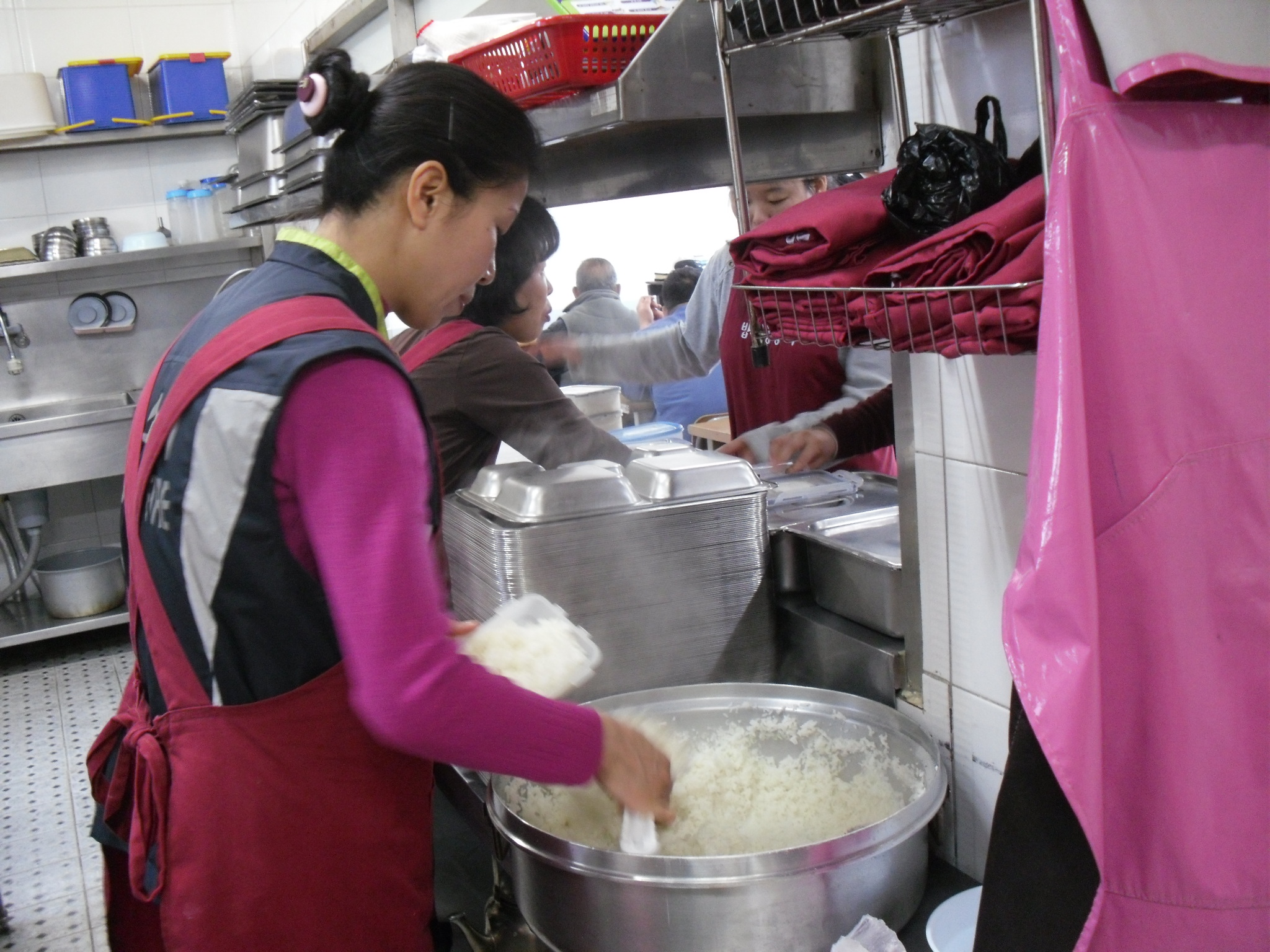 봉사자들 대부분은 가끔보던 반가운 분들이었지만 처음온 사람이 눈에 띄었습니다. 대학생처럼 보였는데 한창 친구들과 어울려 놀고싶을 때 일텐데 또래도 없이 혼자서 조용히 미소 띈 얼굴로 봉사하는 모습이 너무 아름다웠습니다.