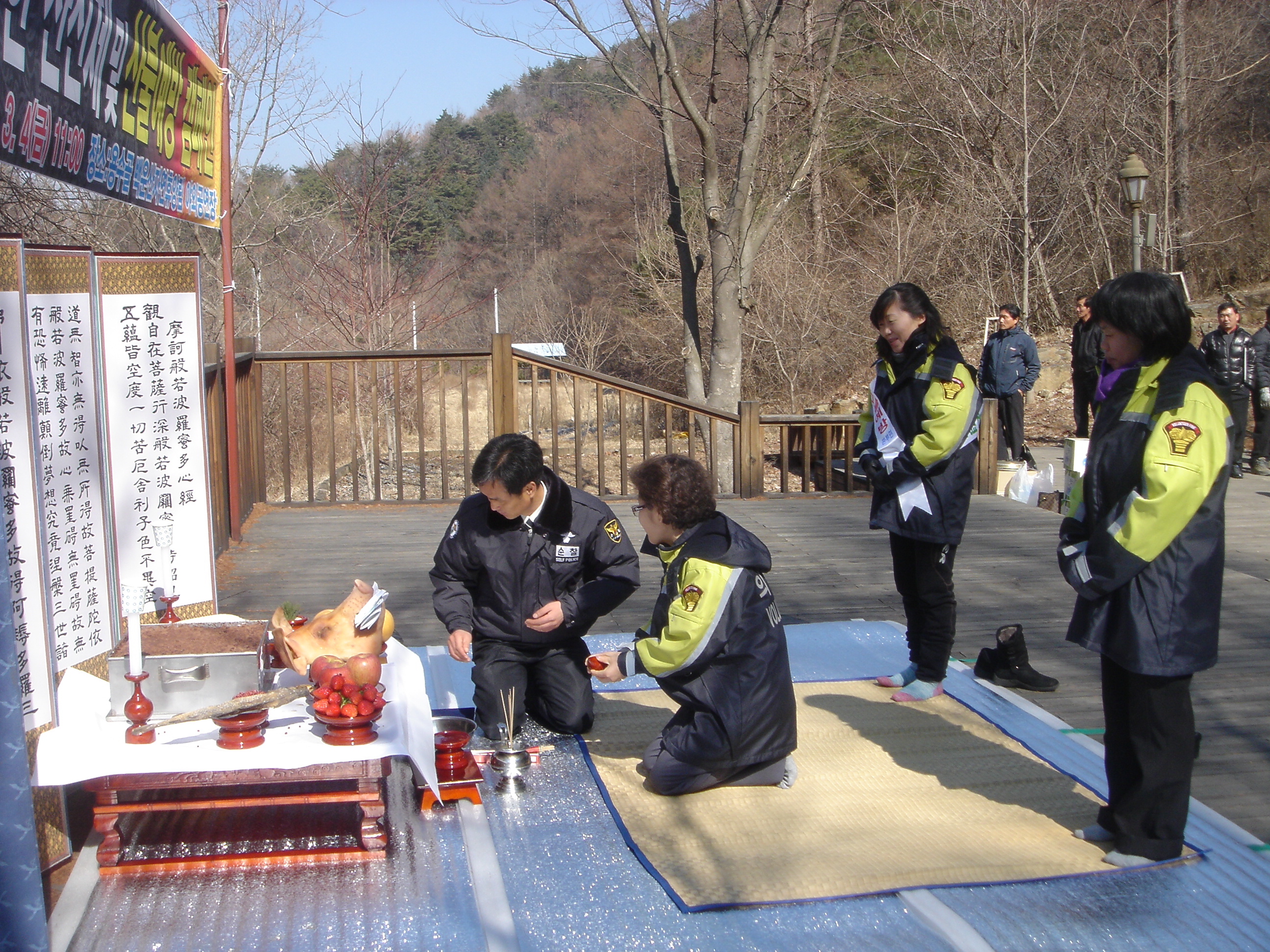 판부여성대 ( 대장 노순일 외13명) 는 4일 오전10~13시 까지 서곡리 용수골 유원지에서 면민을 위한 산신제및산불조심캠페인을 실시 하였습니다.