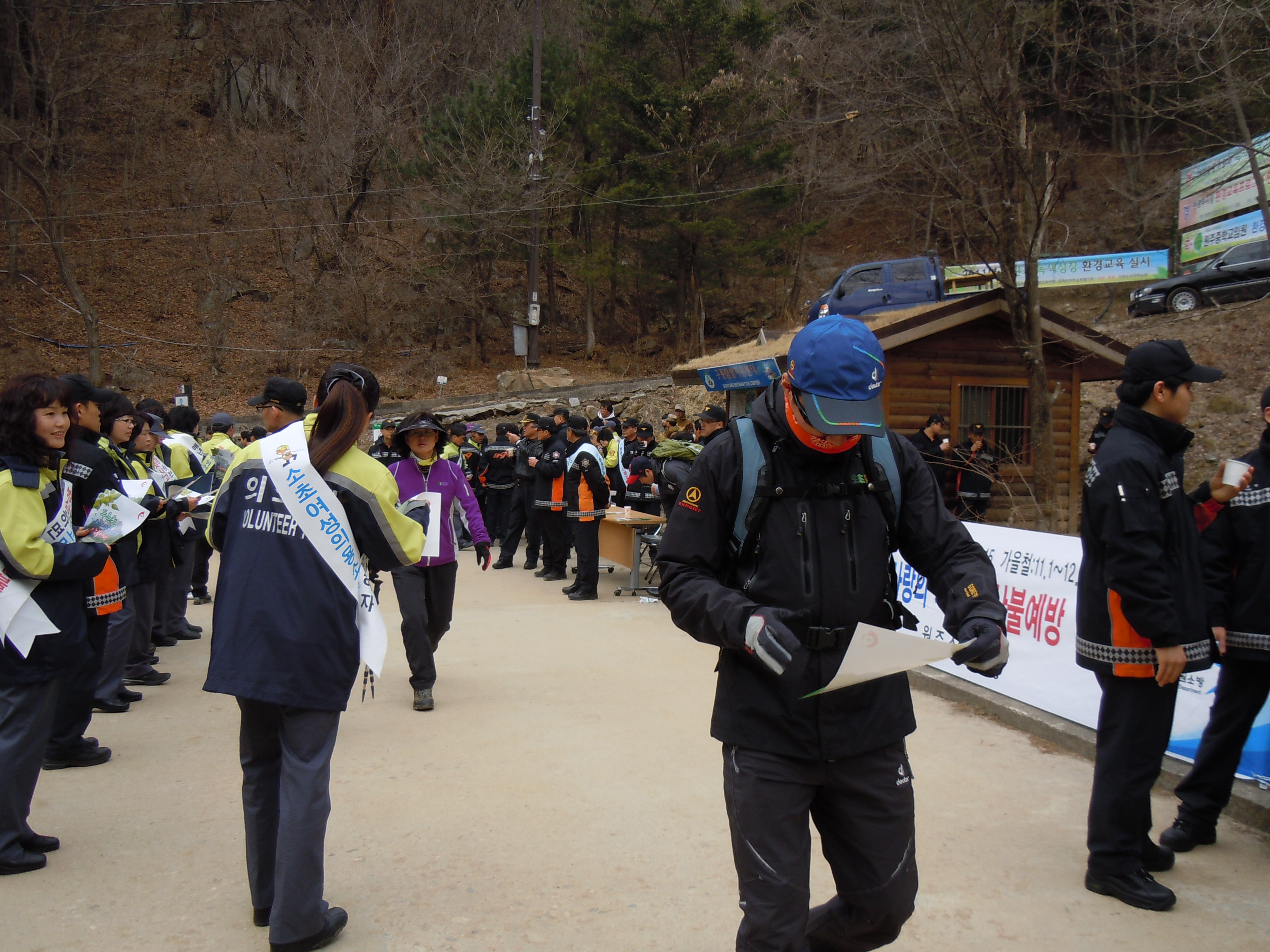 화재와의 전쟁과 산불 (봄철)방지 예방 홍보 캠폐인및 전단지 배포등을 등산객을 대상으로 하였습니다..