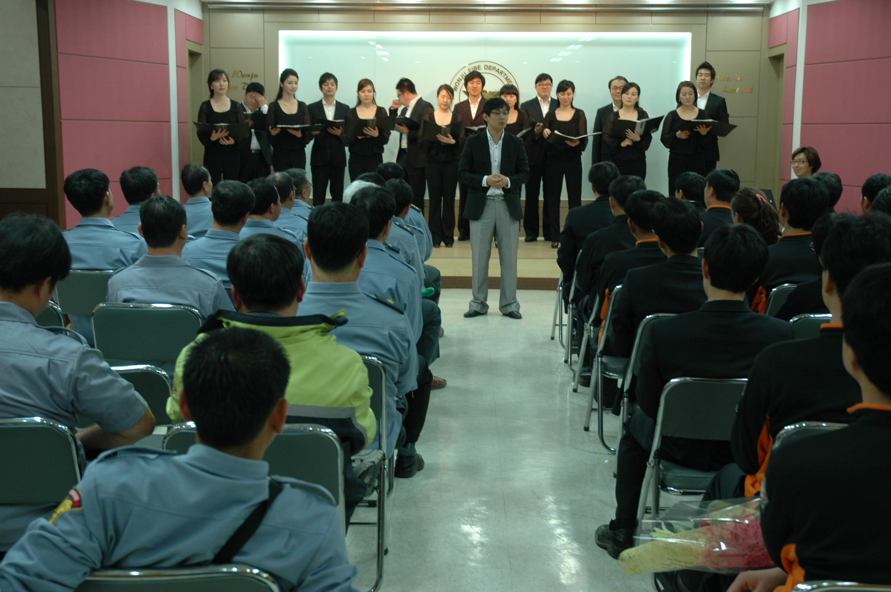 원주의용소방대 (대장 조성일)는 4월 15일 정기교육을 원주소방서 회의실에서 대장님 외47명이 참가하여 대장님의 교육과 김용흠 기술반장님의 위촉, 봄철화재 예방 교육, 원주시립합창단 공연등 13:00-17:00까지 실시 하였습니다.