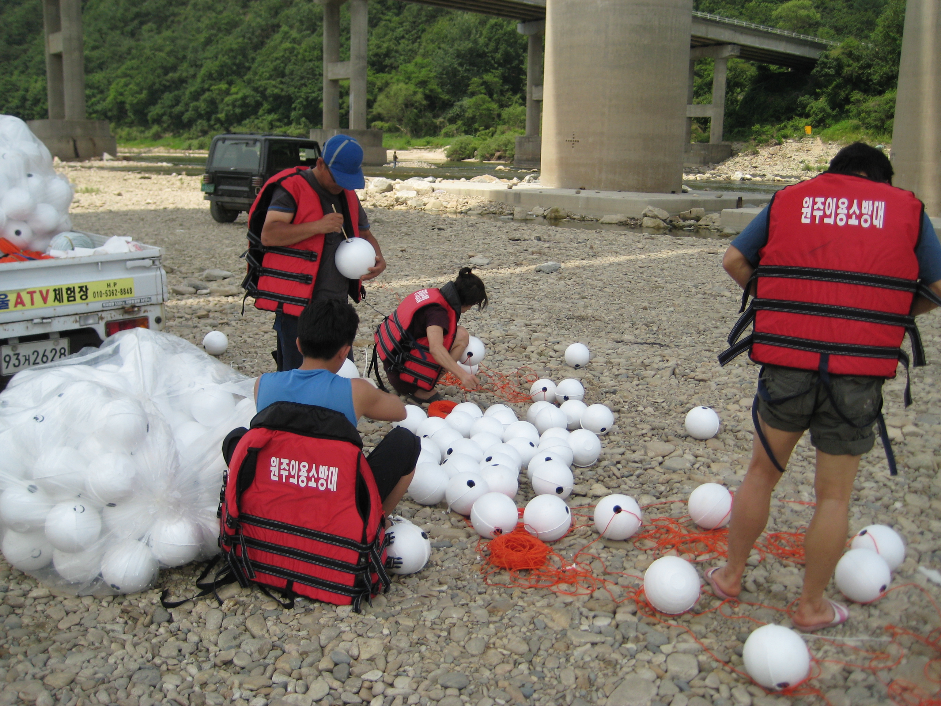 원주의용소방대(대장 조성일)는 6월20-21일 이틀간 대원 40명이 참가하여 섬강가(취병유원지,판대위원지,간현관광지,칠봉유원지,옥산유원지)에 수영금지를 알리는 부표설치를 실시했습니다.