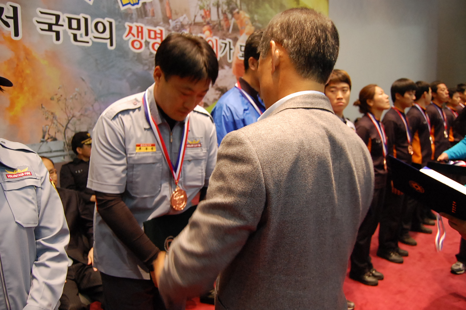 개인최강 남자부문 3위, 단체경연(수관연장방수자세) 부문 1위, 단체줄넘기 5위라는 최강성적을 거두는 과정에서 선수단 및 응원단이 보내 주신 열정과 지원 및 질서정연한 참여 의식에 대해 진심으로 감사드립니다. 또한 선수 및 응원단이 힘낼 수 있도록 맛나는 건강음식을 준비해 주신 박화선 신림여성대장외 대원님들께도 진심으로 감사드립니다.