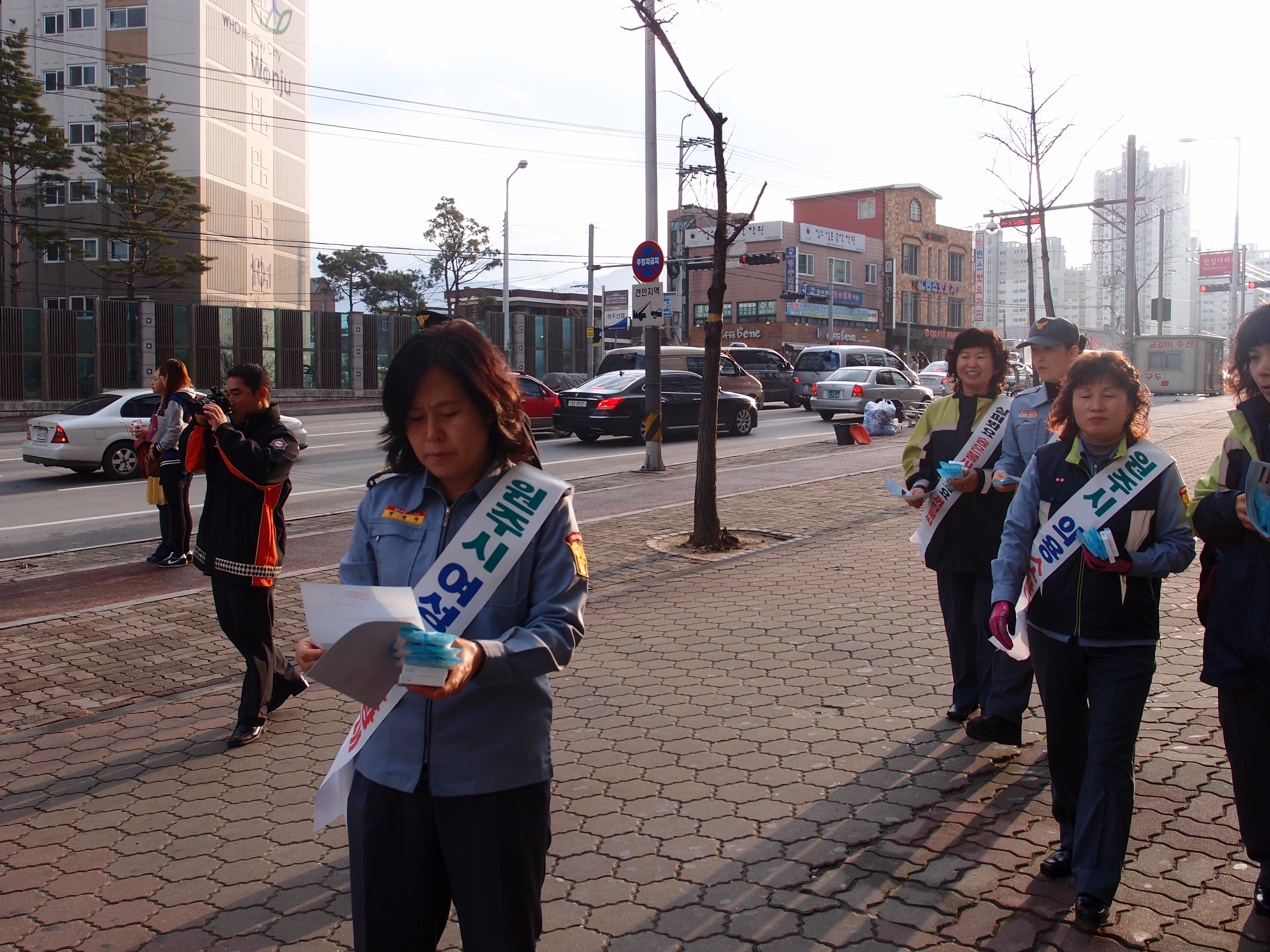 우리 원주시 여성대는 시네마앞에서 불조심 캠폐인을 아침 8시에 모여.