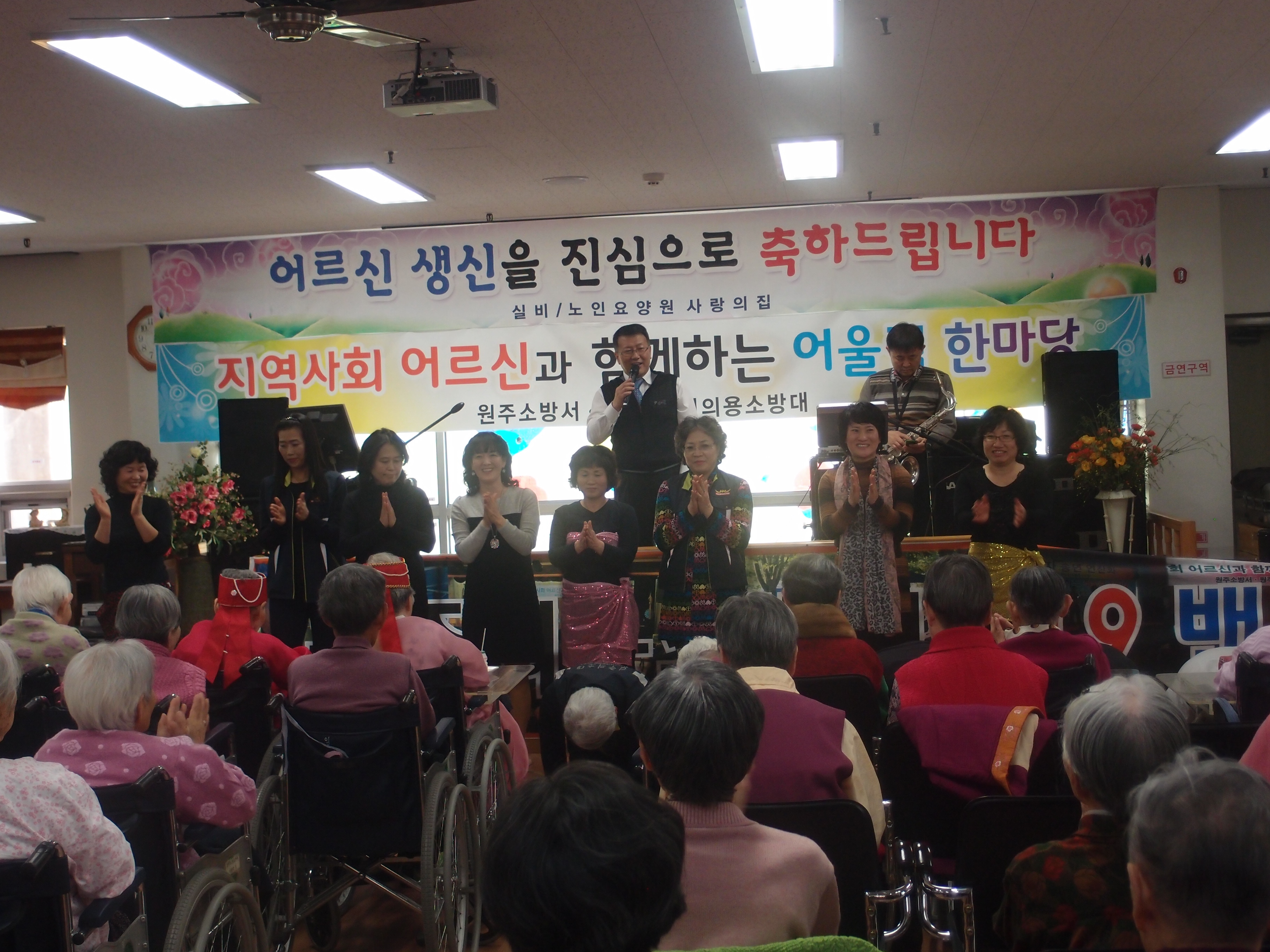 대원들의 노래와 율동으로 어르신들을 즐겁게 해드렸습니다.