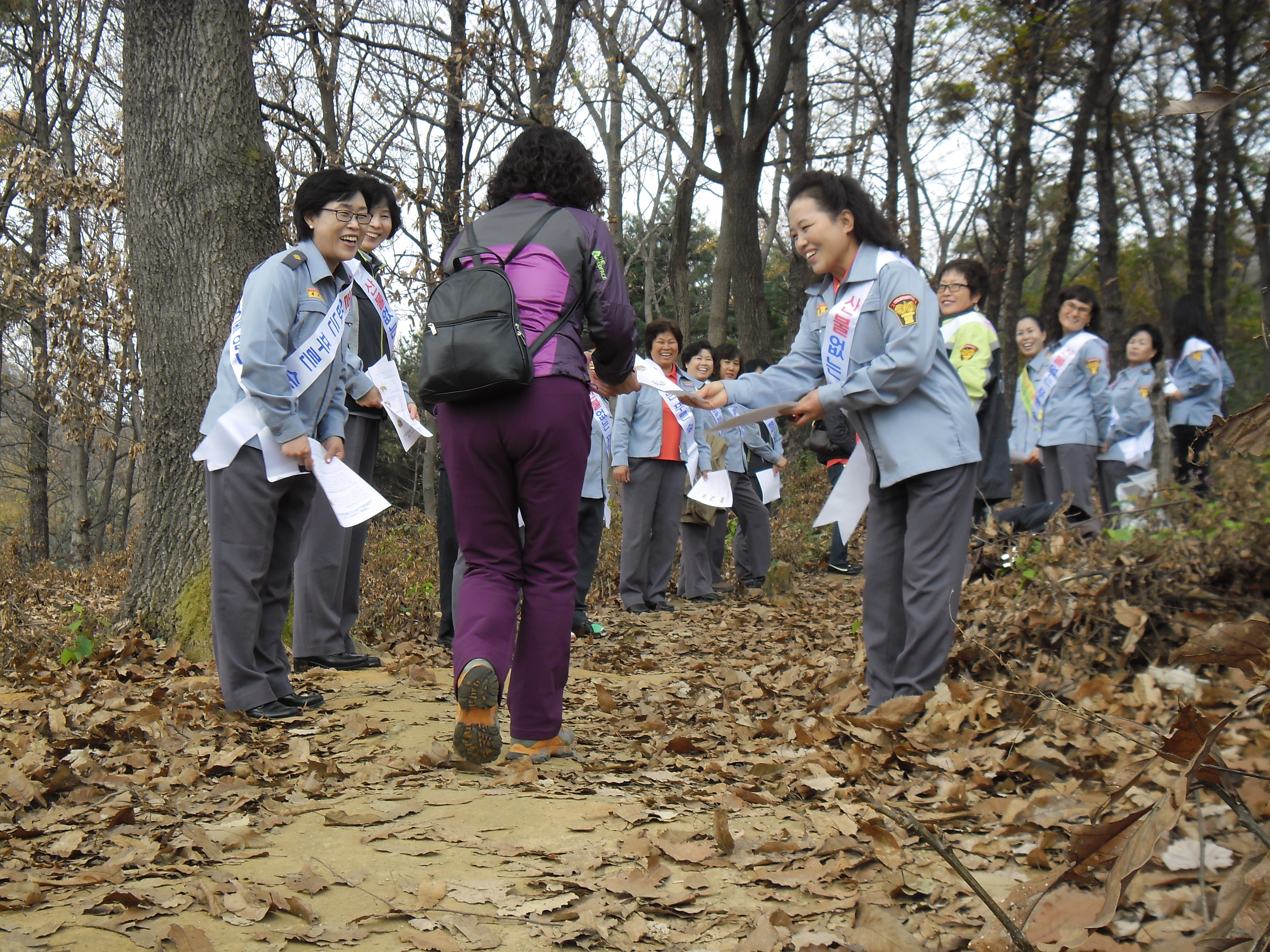 불조심 전단지를 배포하며, 등산 시 화기소지하지 않기와 가져온 쓰레기 되가져가기 등의 캠페인 활동을 하였습니다.