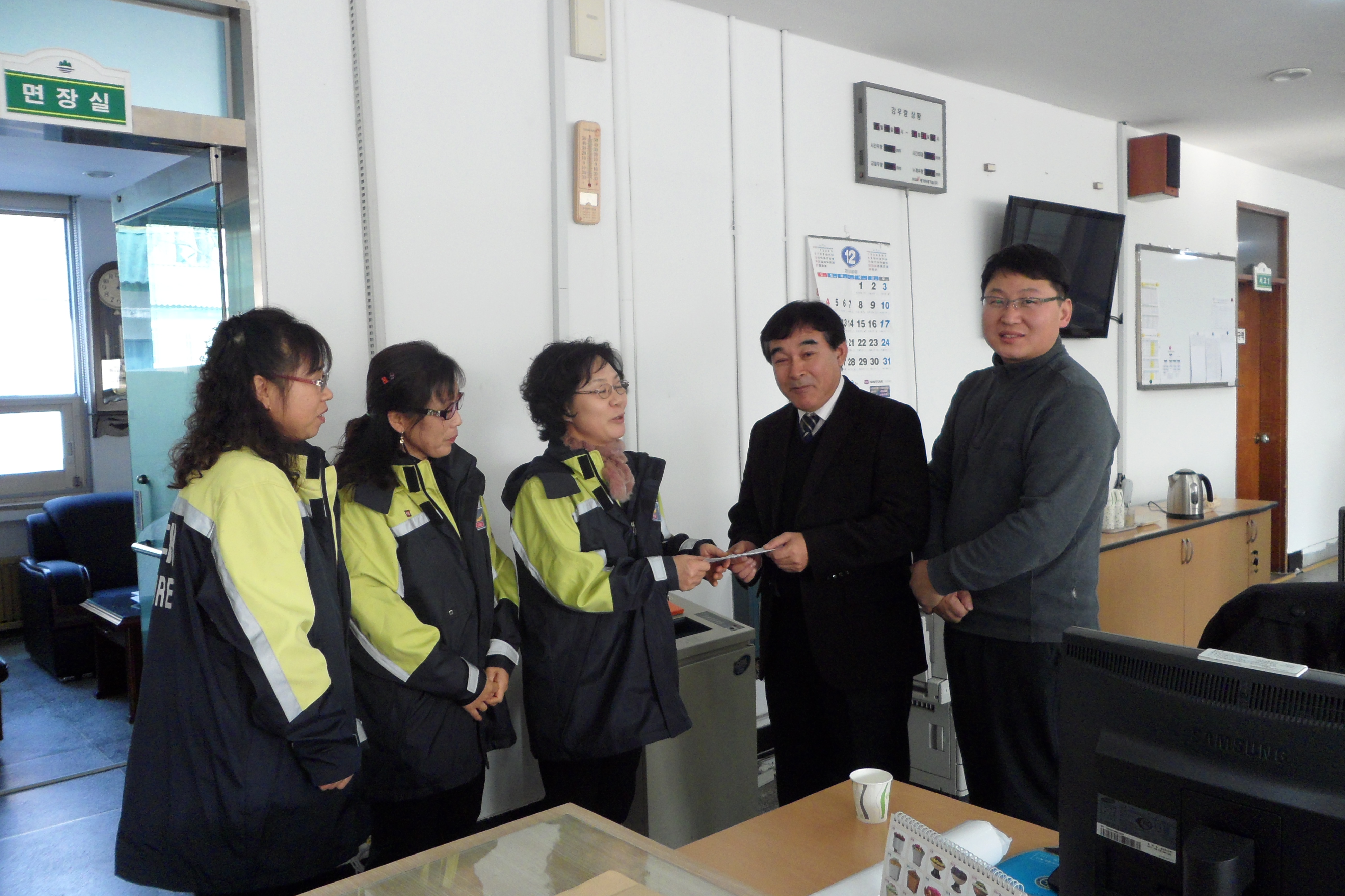 2011년 12월28일에 지정여성의용소방대 대장(박인수)외2명은 지정면사무소에 불우이웃 성금을 전달하였습니다.적은 성금이지만 뜻있는곳에 쓰였으면 하는 바램입니다. 2012년에도 대원 여러분 행복하세요.