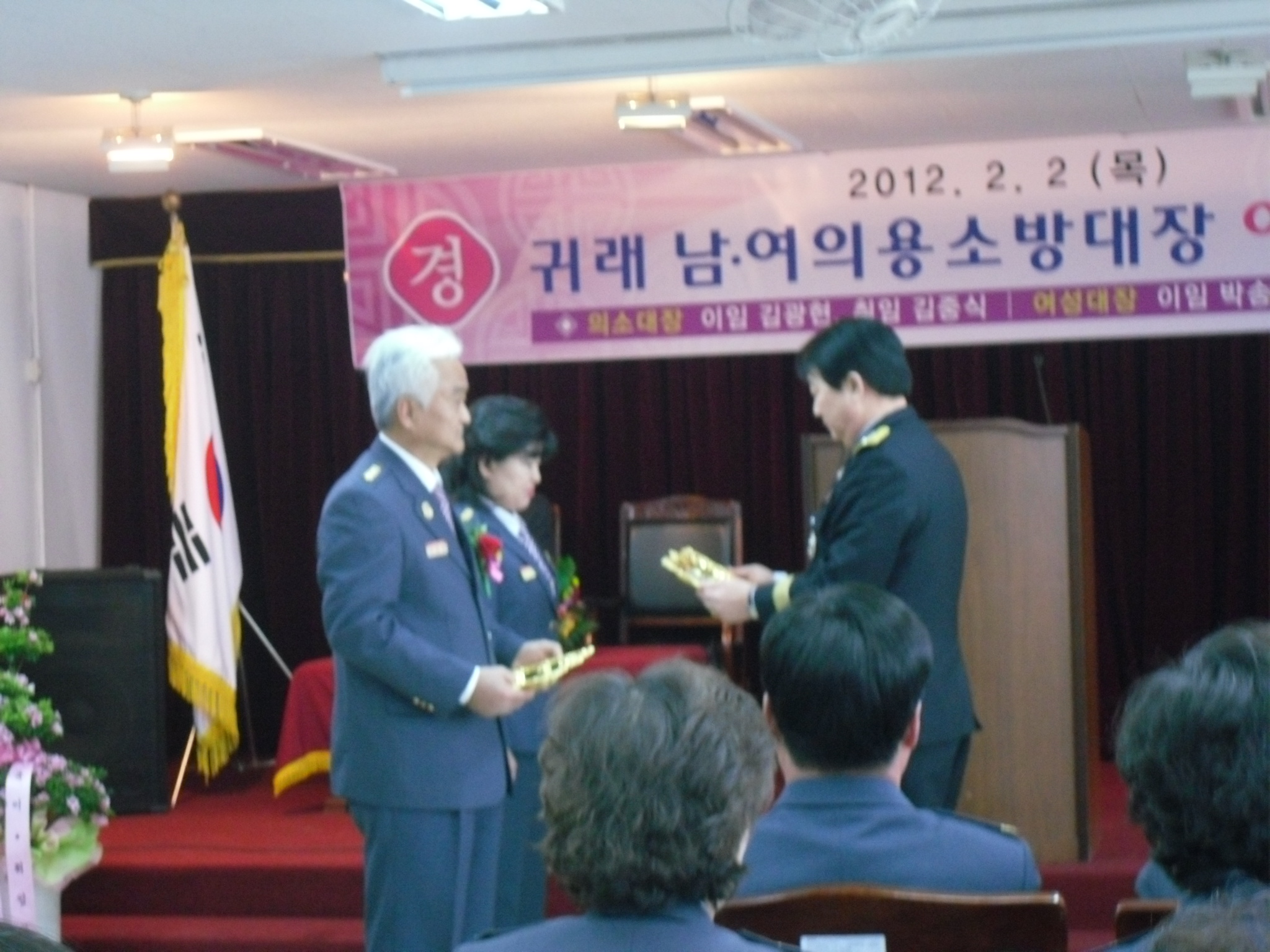 2012년 2월 2일 (목) 11:00 ~ 흥업여성의용소방대(대장 오오석외 2명)는 귀래면사무소 2층 회의실에서 진행된 귀래남여의용소방대장 이취임식에 다녀왔습니다.