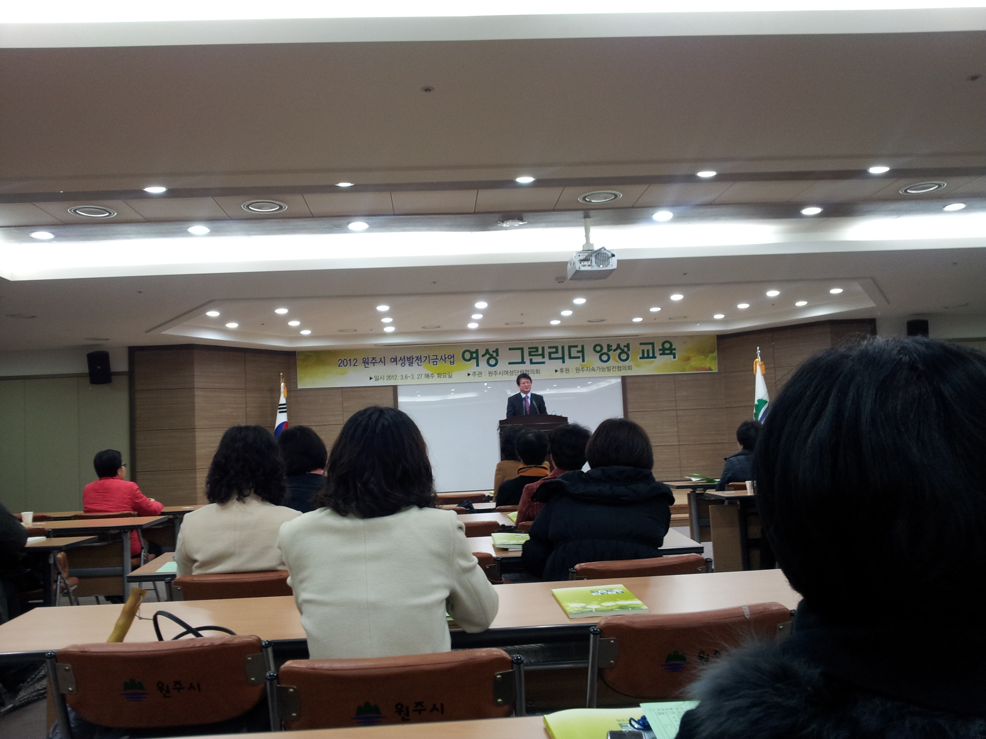 판부여성대( 대장 노순일 )는 3월 6일 9시30분 부터 개강한 여성그린리더 양성교육에 총무부장외4명의 대원이 기후지킴이가 되기 위한 첫 걸음을 시작하였습니다.