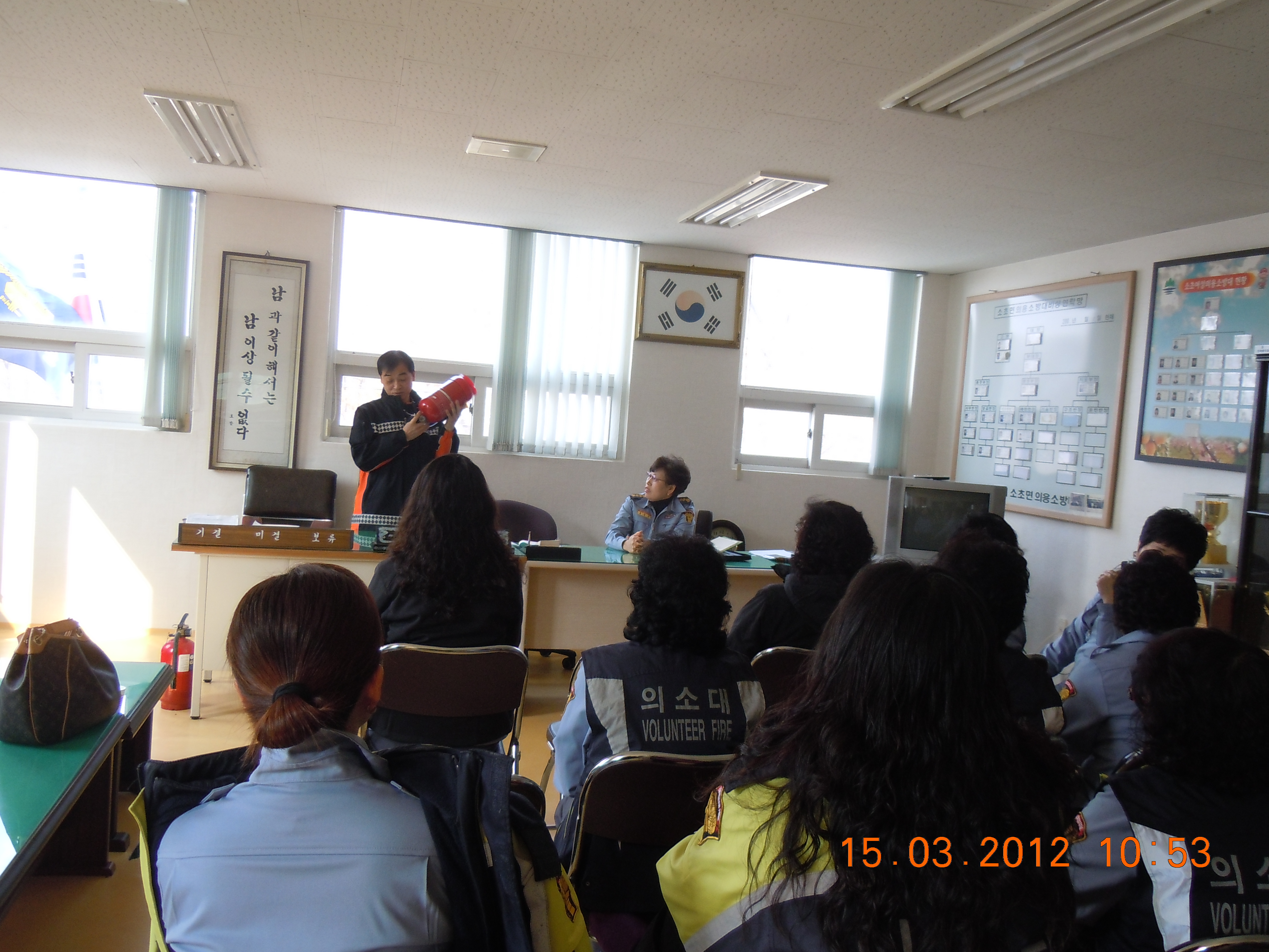 3월15일 소초여성의용소방대 윤금순대장 외23명은 오전 10시부터 3월 정기교육을 실시 하였습니다..