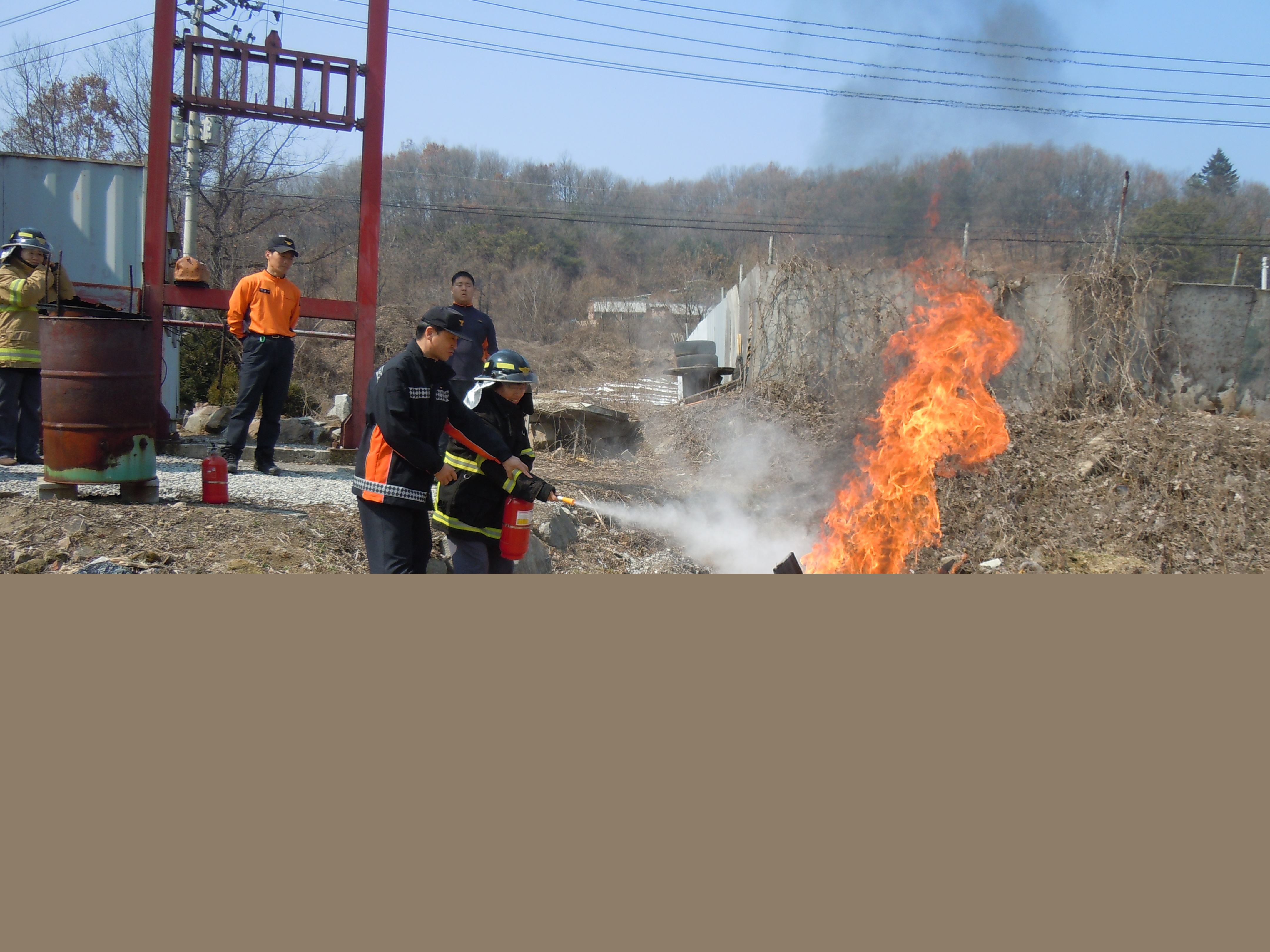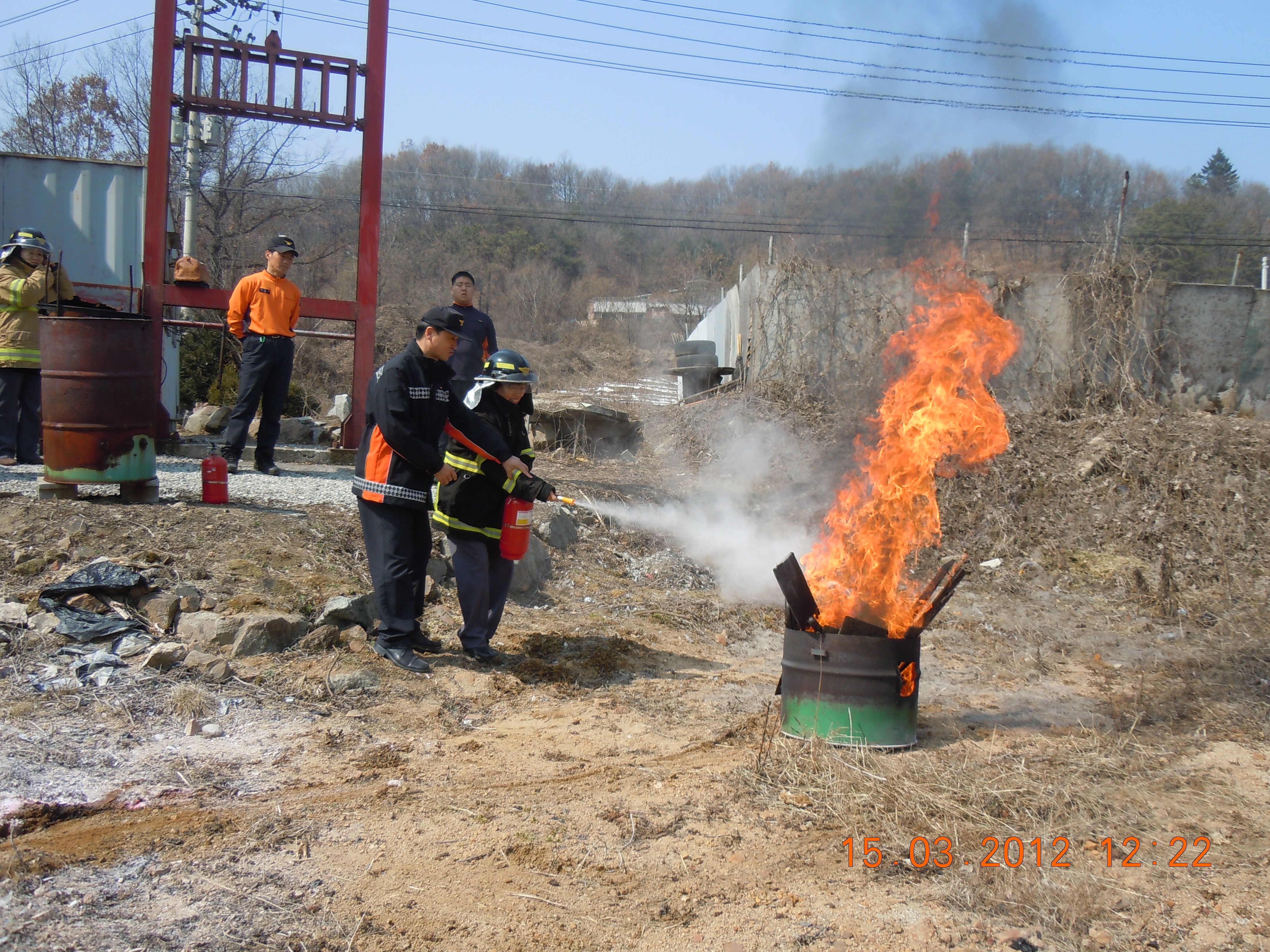 방성이센터장님의 인사소개와 단원들과의 담화의 시간을 가졌으면 소화기 사용법을 배워서 직접 불을 그는 연습을 하였다.