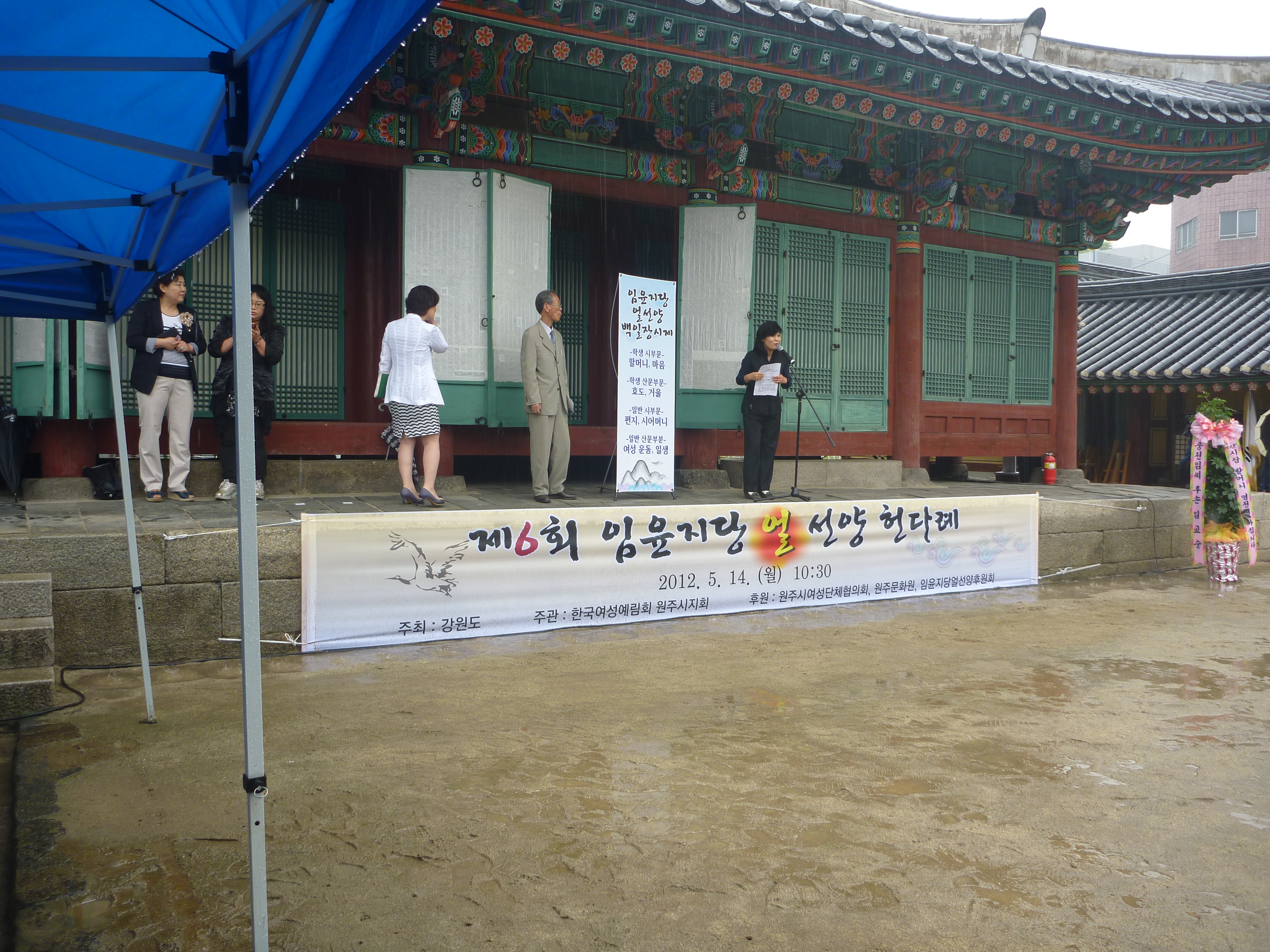 흥업여성대(대장오오석)에서는 2012년 5월14일 월요일 10:30~15:00까지 조선시대의 여성 성리학자 임윤지당의 얼을 기리는 헌다례가 강원감영 선화당 앞에서 열렸다.사회 각계각층에서 활발이 활동하는 파워우면 들이 대거 참석석해 눈길을 끌었다. 오후 14:00부터는 제4회 임윤지당 얼선양 백일장이 진행되었다.비가와서 원활하진 않았지만 많은 분들이 참석해주셨다.백일장에는 학생과 일반인 150여명이 참여해 주었다.