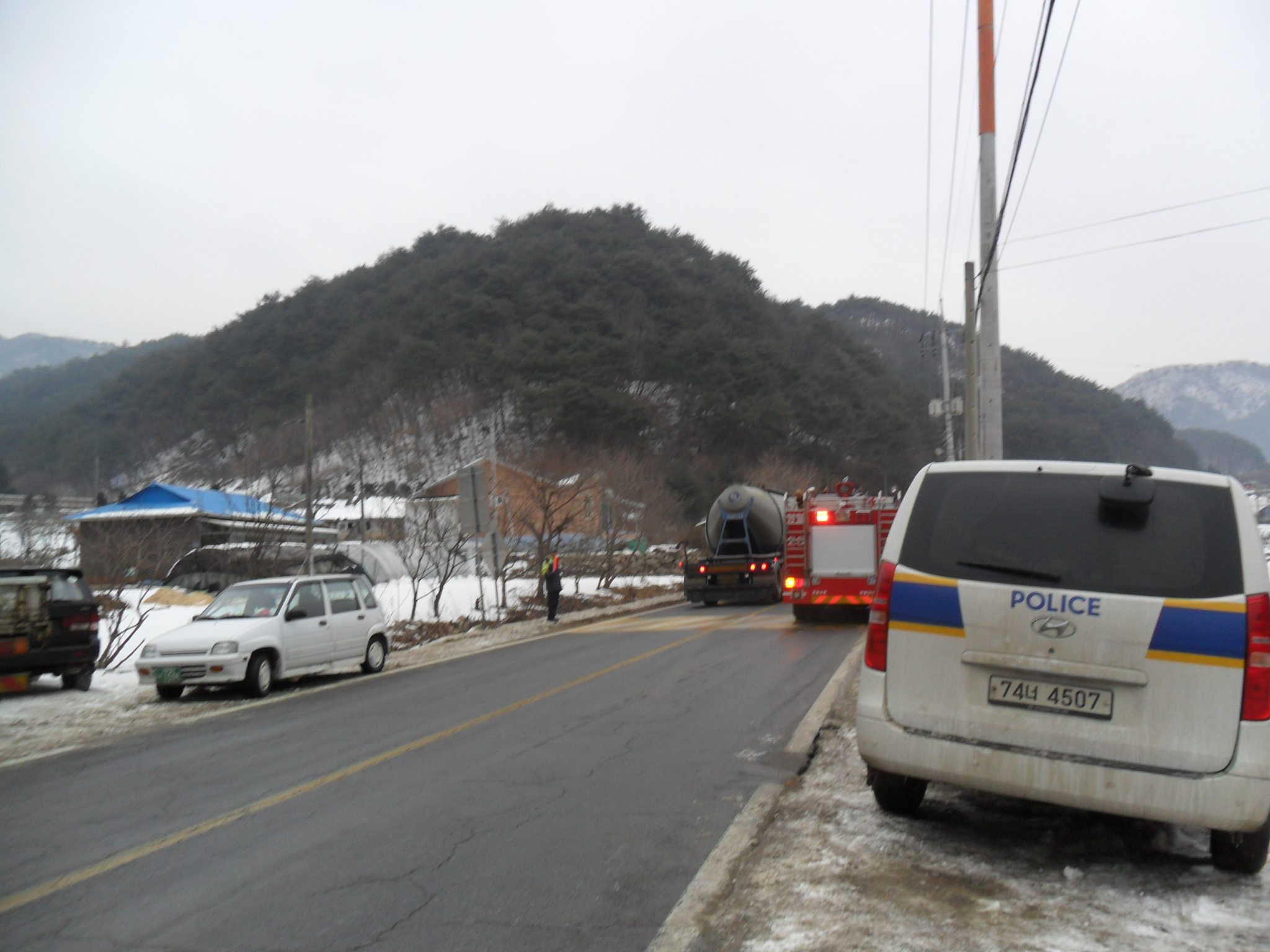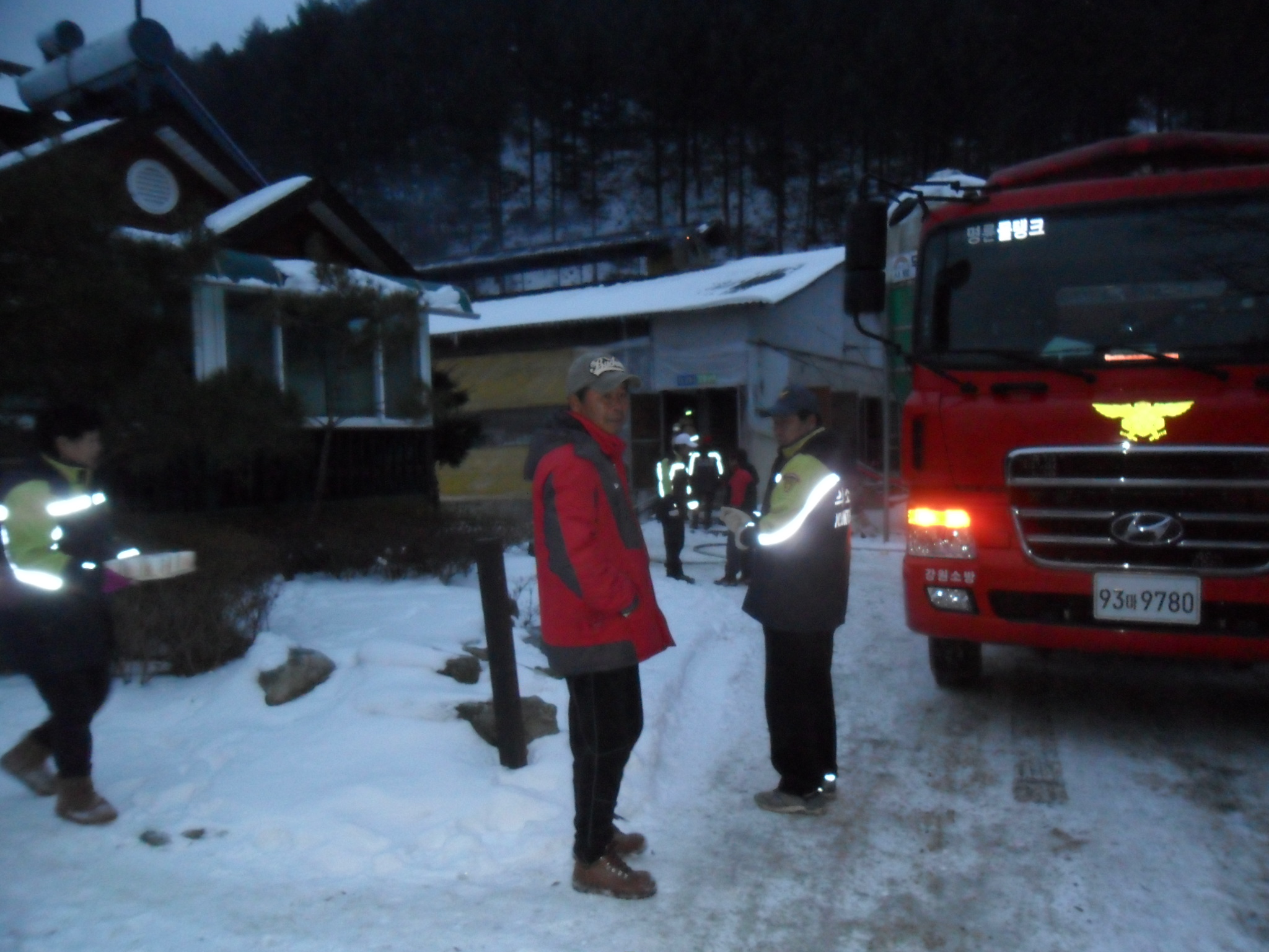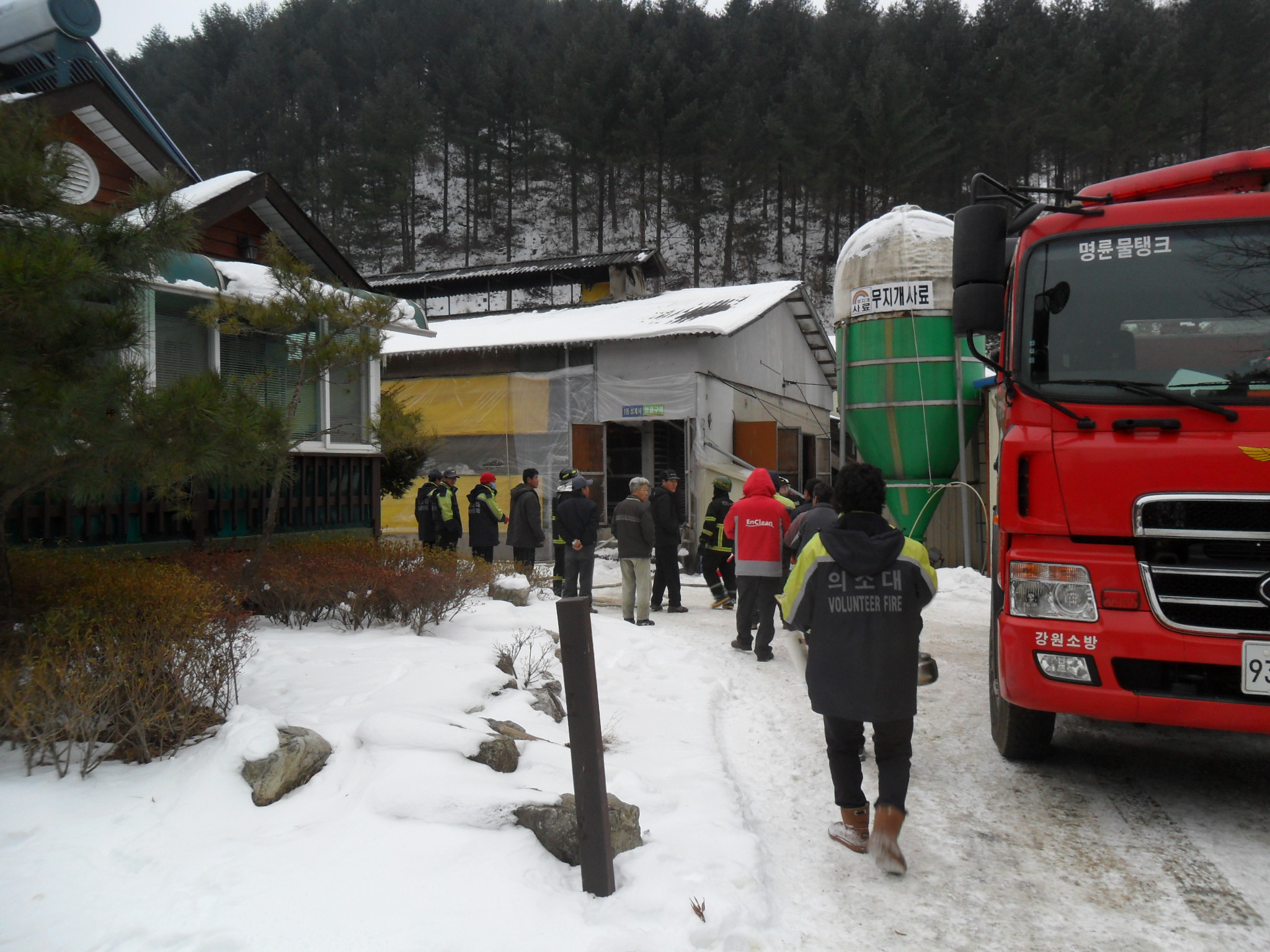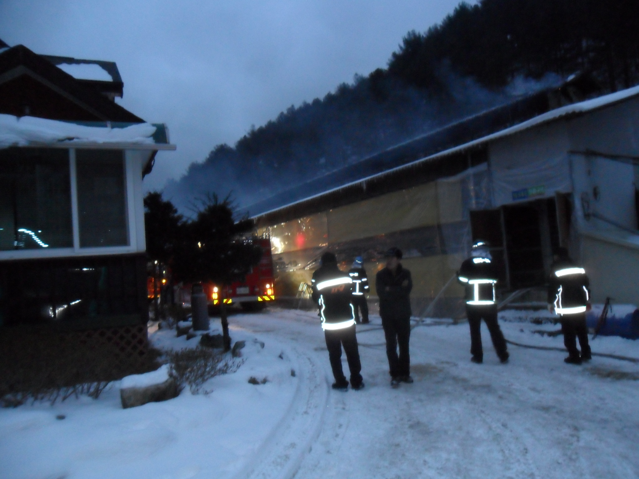 성남리 양계장 화재가 발생하여 화재 진압 보조 및 잔불 정리를 하였습니다.