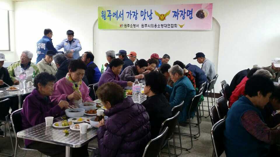 원주의용소방대(대장 조성일),지정면 남,여 의용소방대는 3월19일 지정면 복지회관에서 지역 어르신에게 자장면 중식 봉사를 실시했습니다. 이날 봉사에는 원주의용소방대,지정면 남,여 의소대원 30명이 참가했습니다