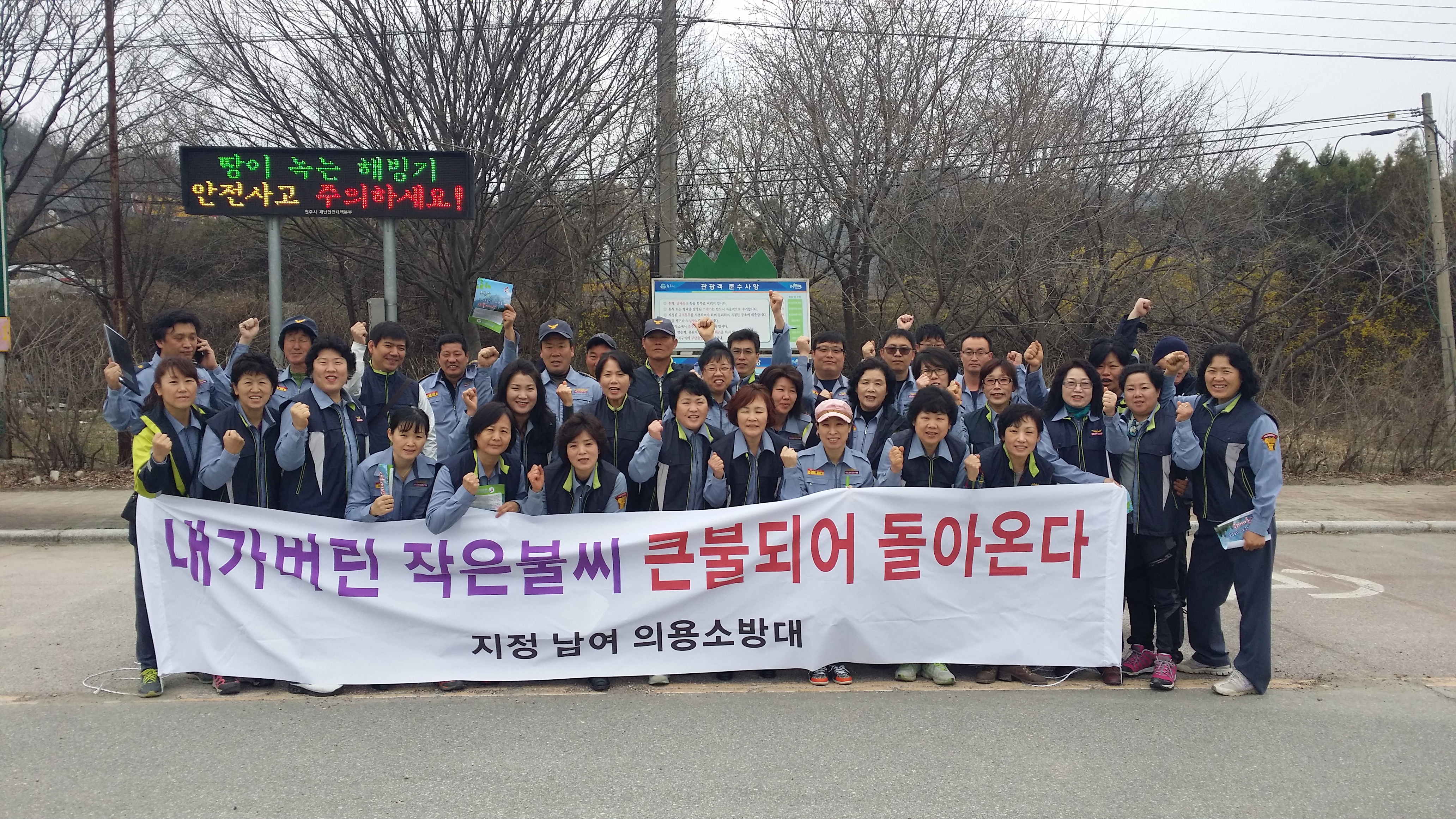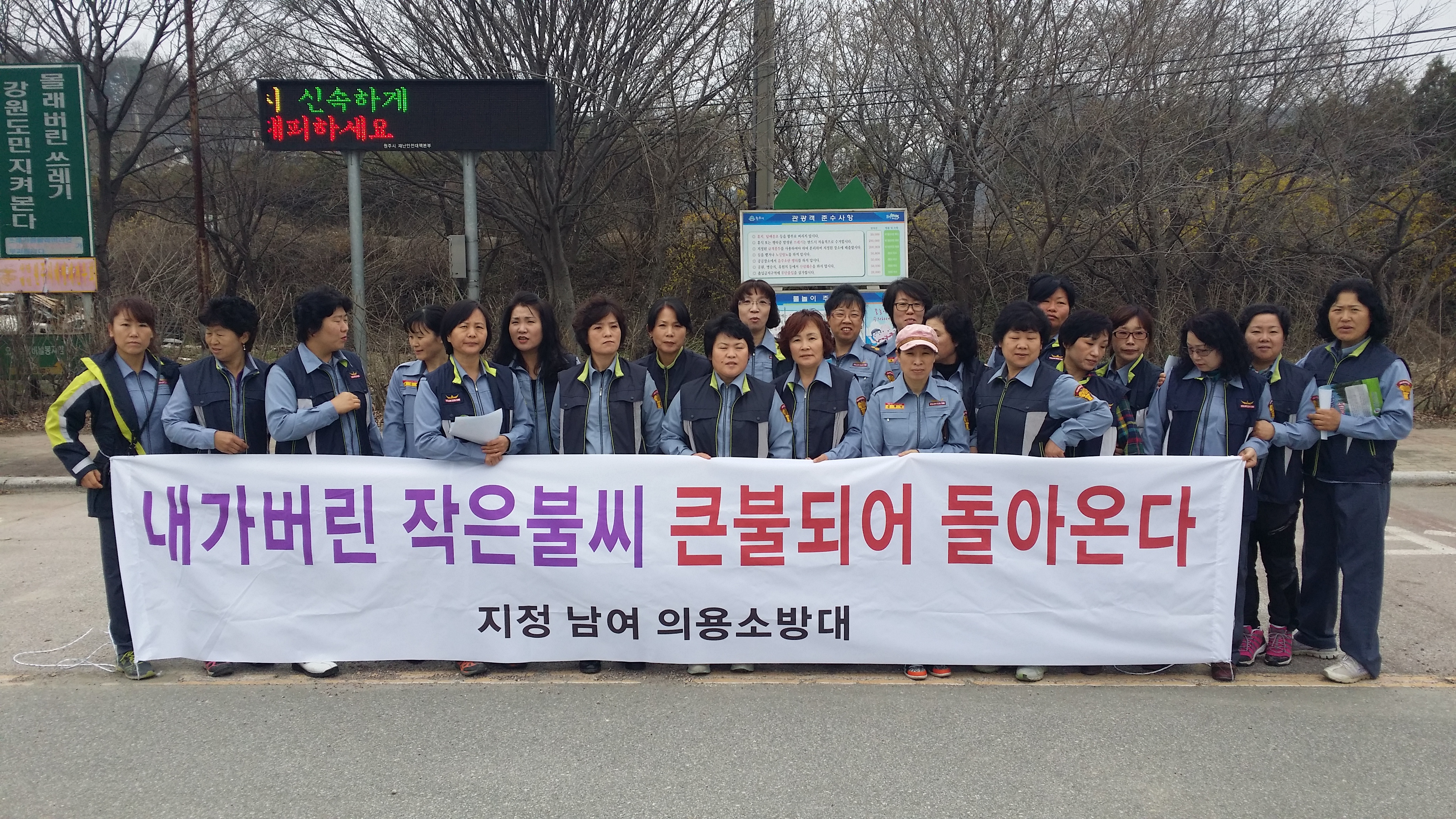 2014년3월29일 오전 10시부터 지정의소대 대장이완승외18명 지정여의소대 대장박인수외 22명은 간현관광지에서 간현을 찾아 등산도 하시고 캠핑하시는분들에게 산불캠폐인을 하였습니다.