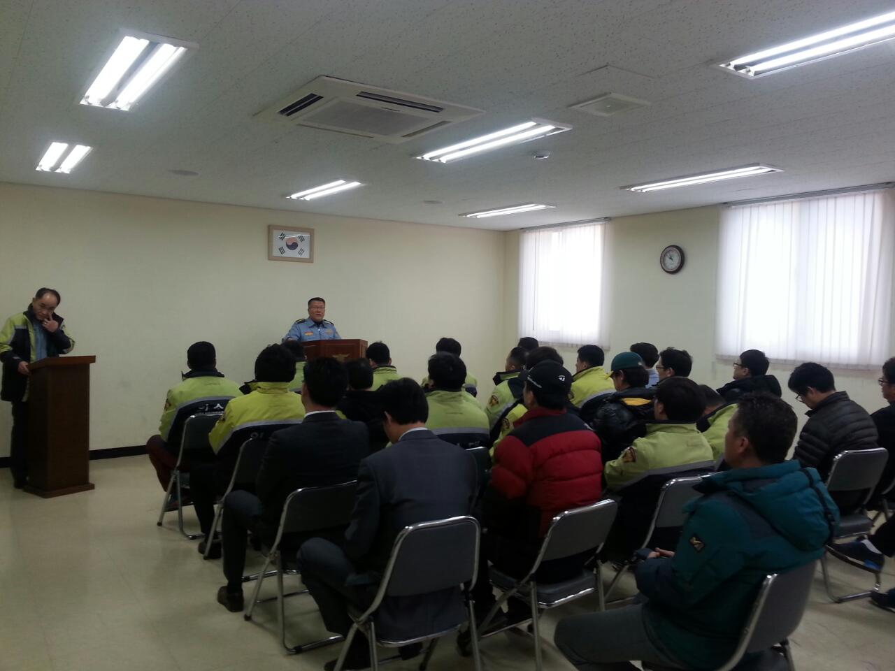 원주남성의용소방대(대장 조성일)는 2월25일 단구센터 교육장에서 2월 정기교육을 실시했습니다 . 이후 봉화산에서 산불안전켐페인도 실시했습니다