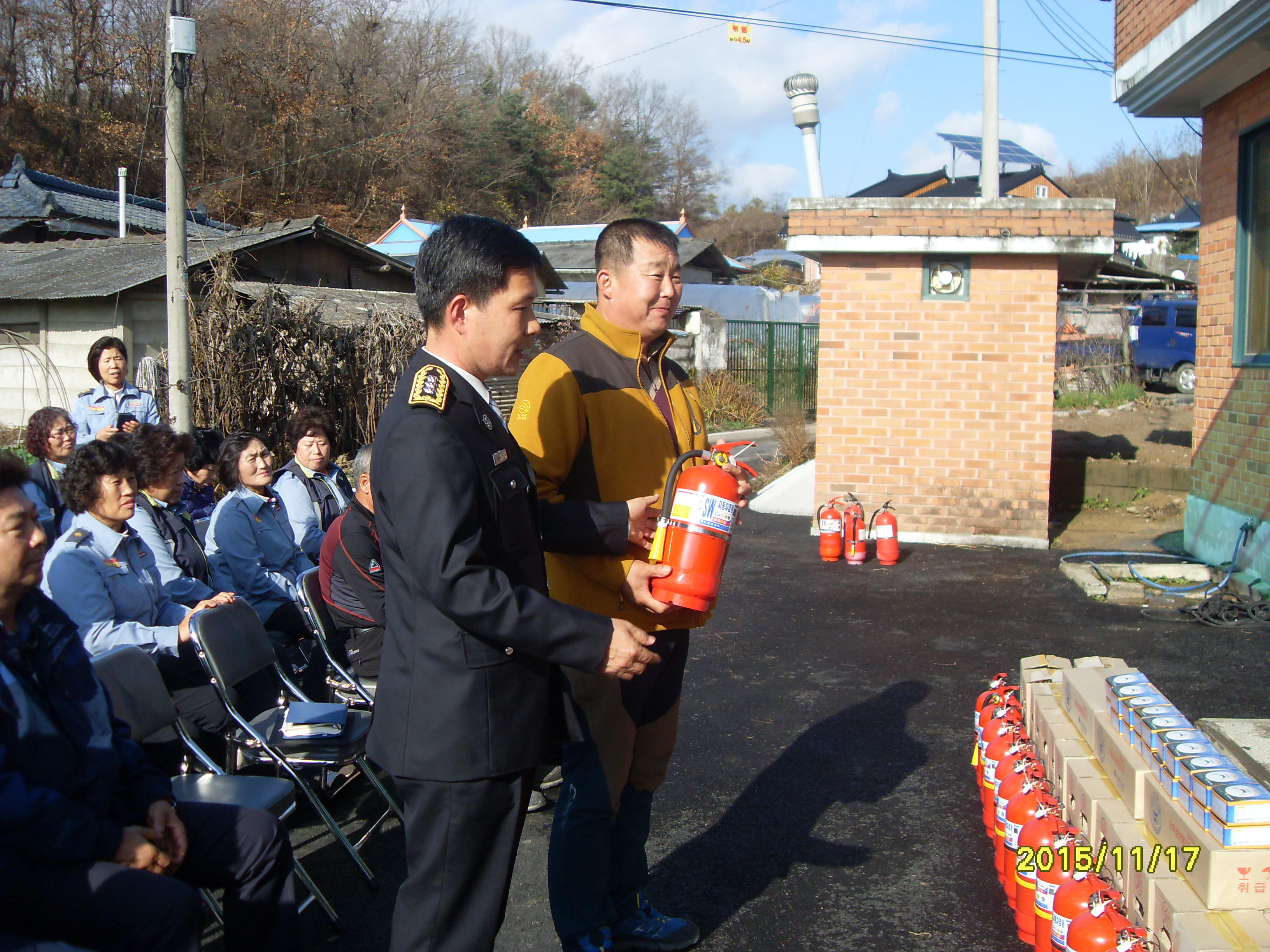 소화기를 나누어 주고 화재경보기를 설치 하였으며 마을 주민에게 소화기 사용법을 교육하고