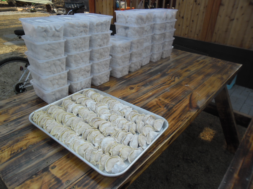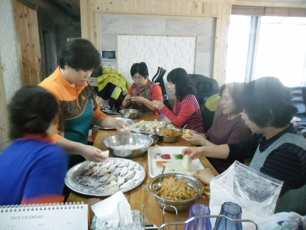 각각 만두재료들을 대원들이 다지고 준비하여 만두를 만들고 서로 화합하는 그리고 1년동안의 봉사에 대한