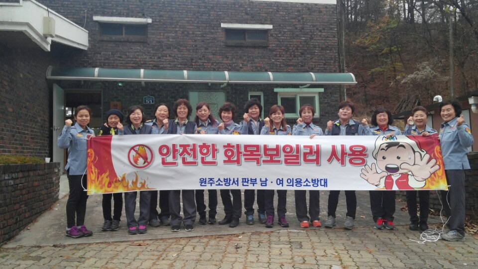 판부여성대(대장 김명자) 에서는 2015.11.19(일) 치악산 영원사입구에서 안전한 화목보일러 사용 캠페인 및