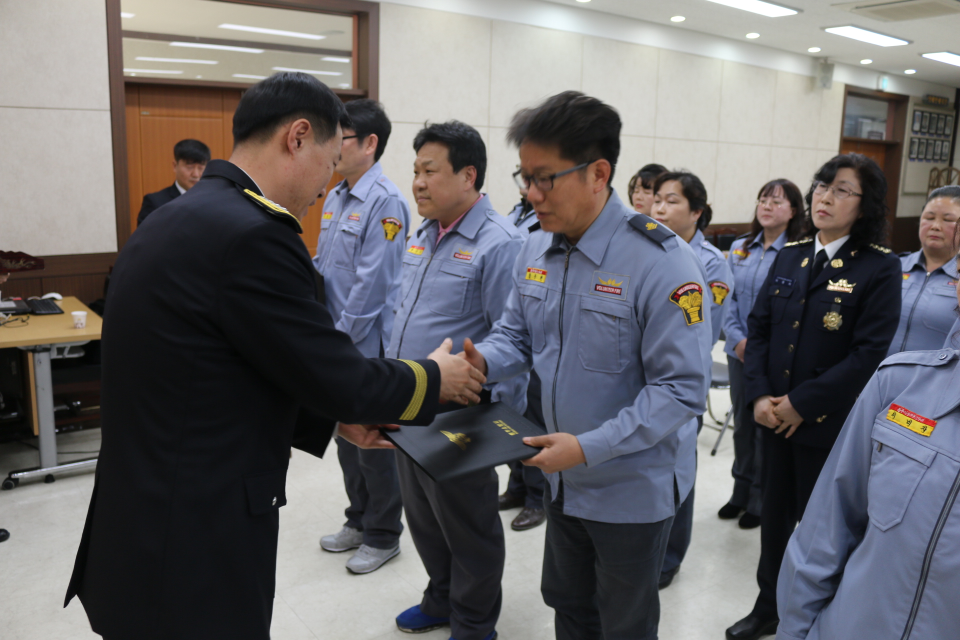 이번 장학금이 지급되는 의용소방대원 자녀장학생 35명(대학생 26명, 고등학생 9명)에게 장학증서를 수여했다.