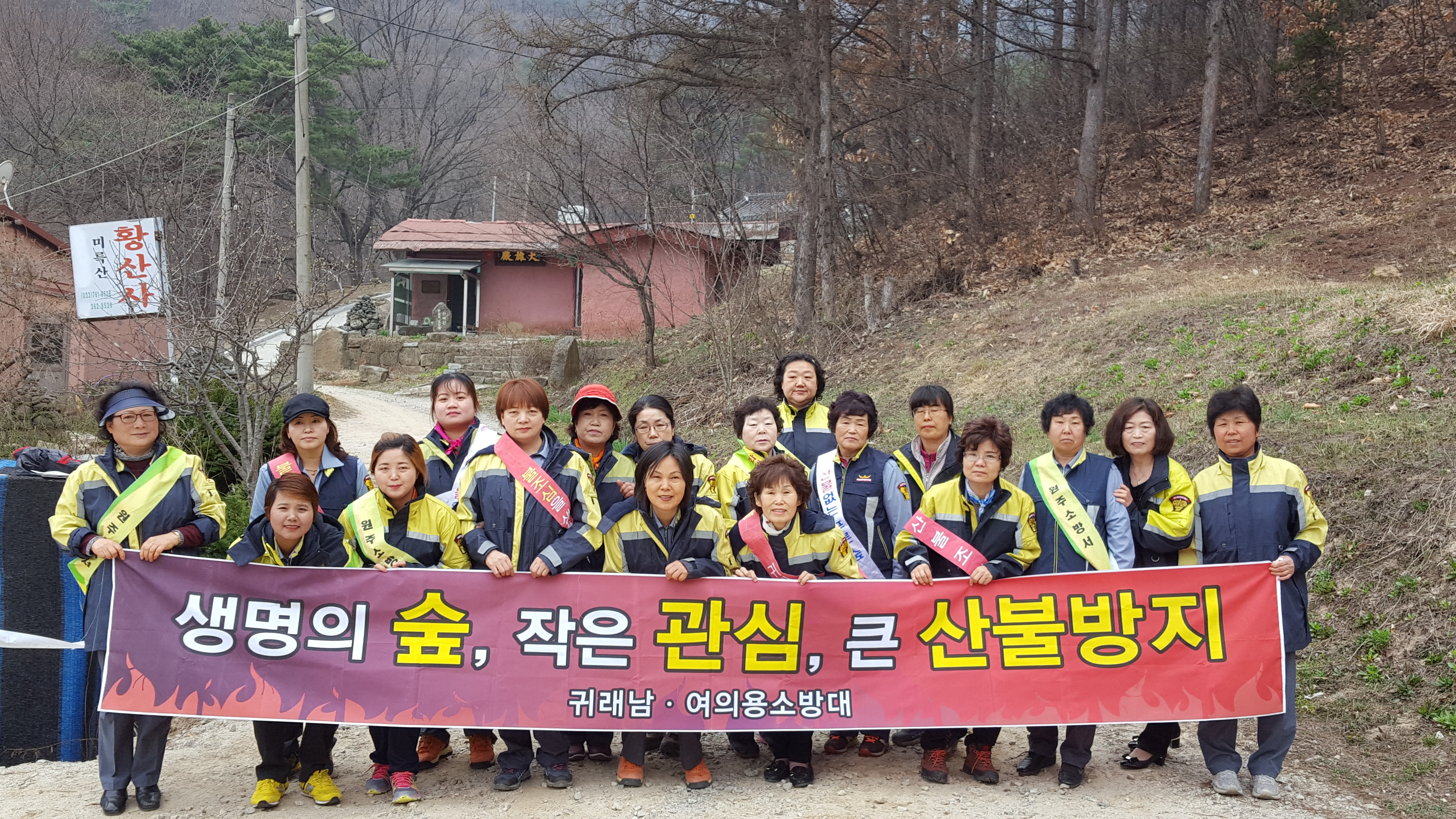귀래여성의용소방대 4월3일 청명,한식 산불예방캠페인을 미륵산 등산로에서 했습니다