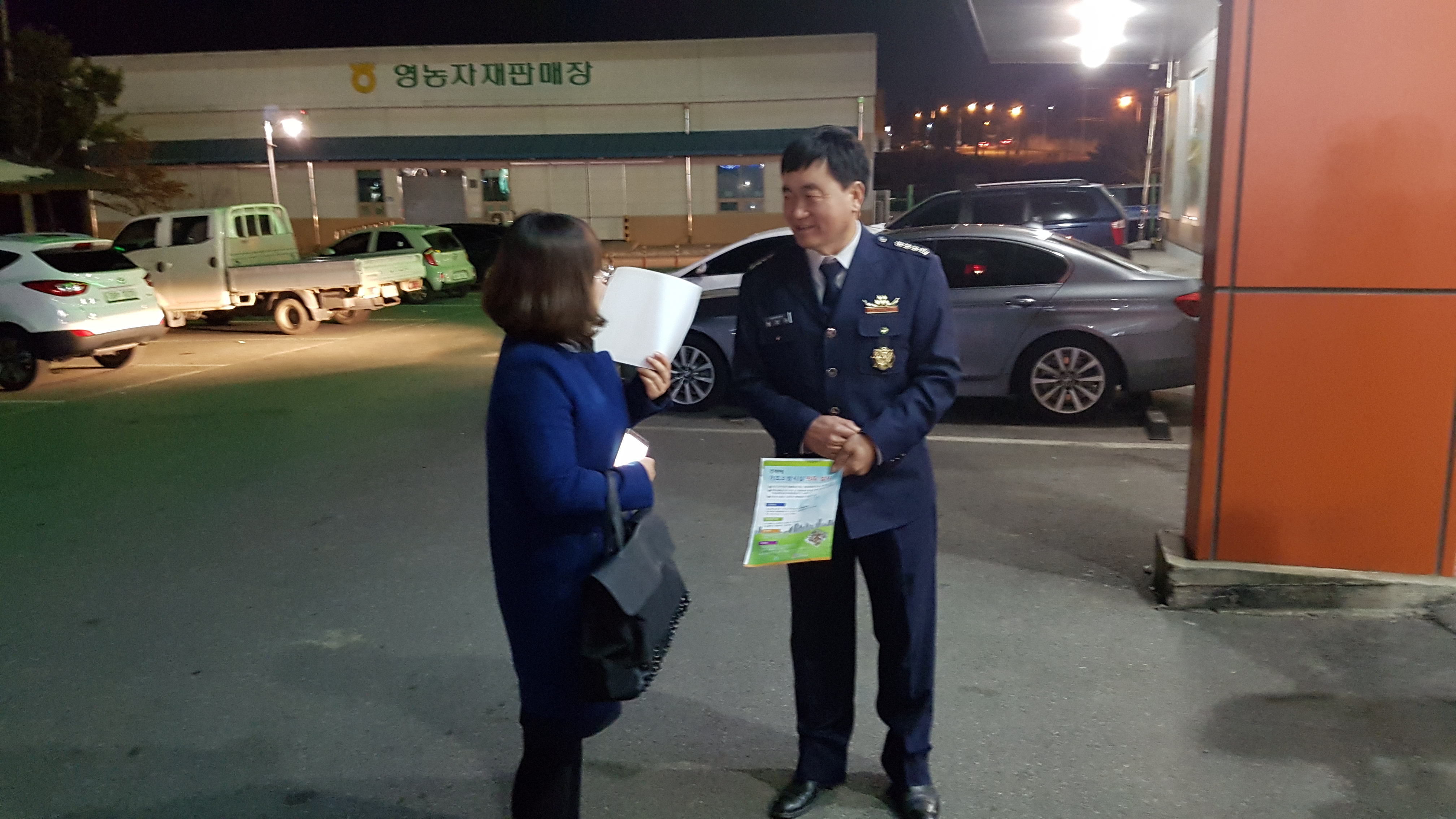 전단지를 지역주민에게 배부하는