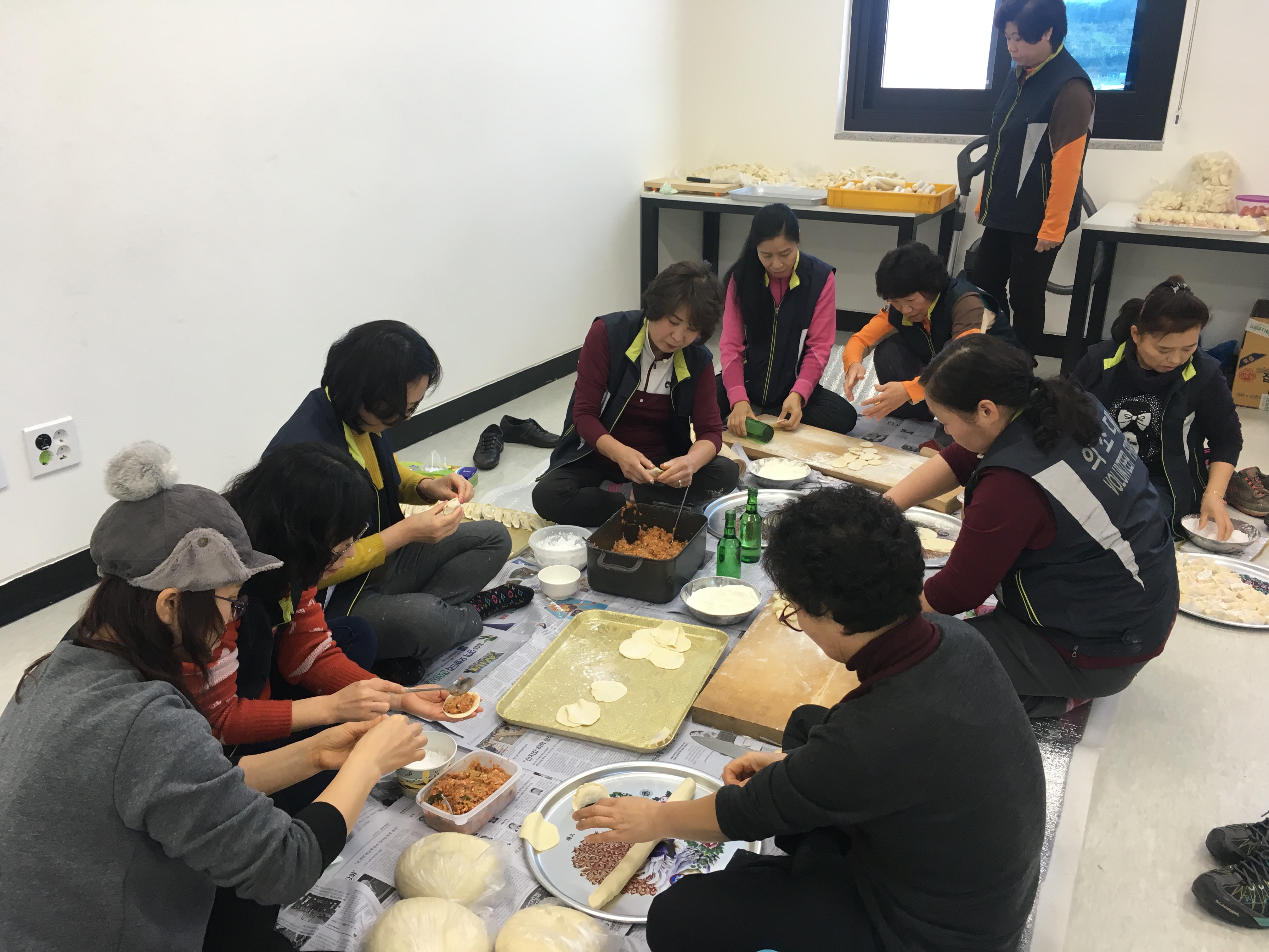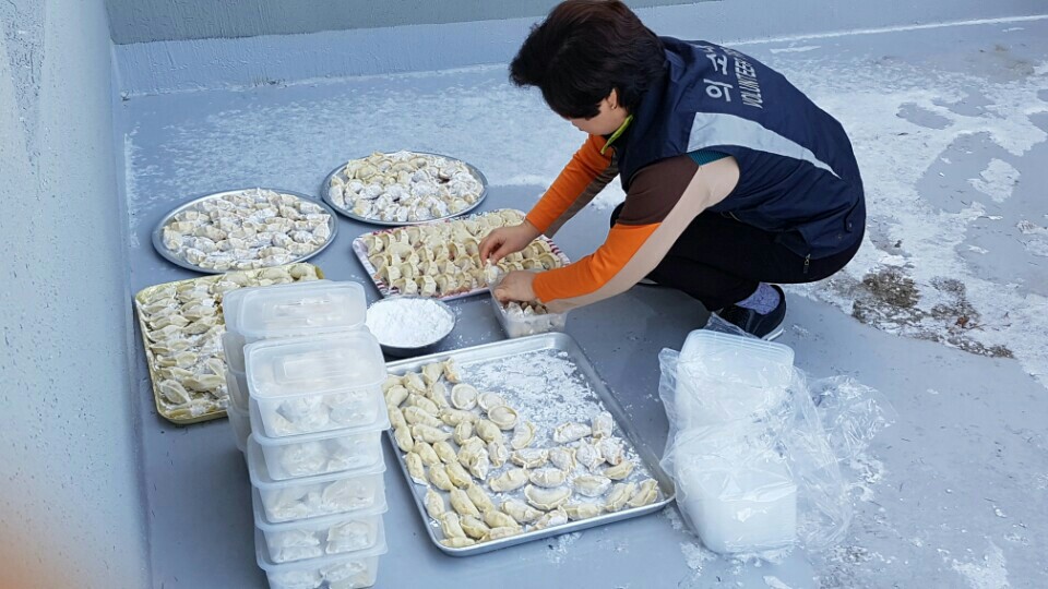 만두를 만들고 서로 화합하는,