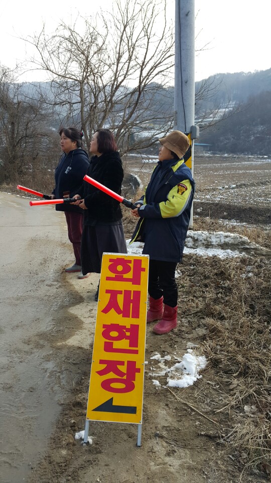 - 2017. 1. 12.(목) 12:33분경 부론면 법천리 소재 주택화재시 여성의용소방대원들이 큰길가에 입간판 설치후