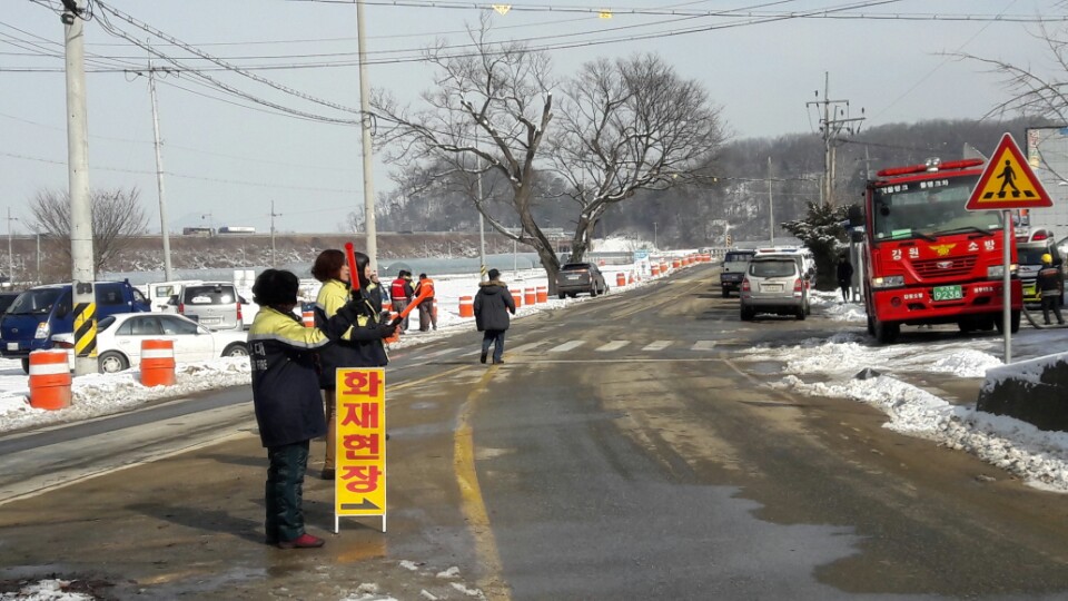 - 화재현장 표시 입간판 설치후 차량통제