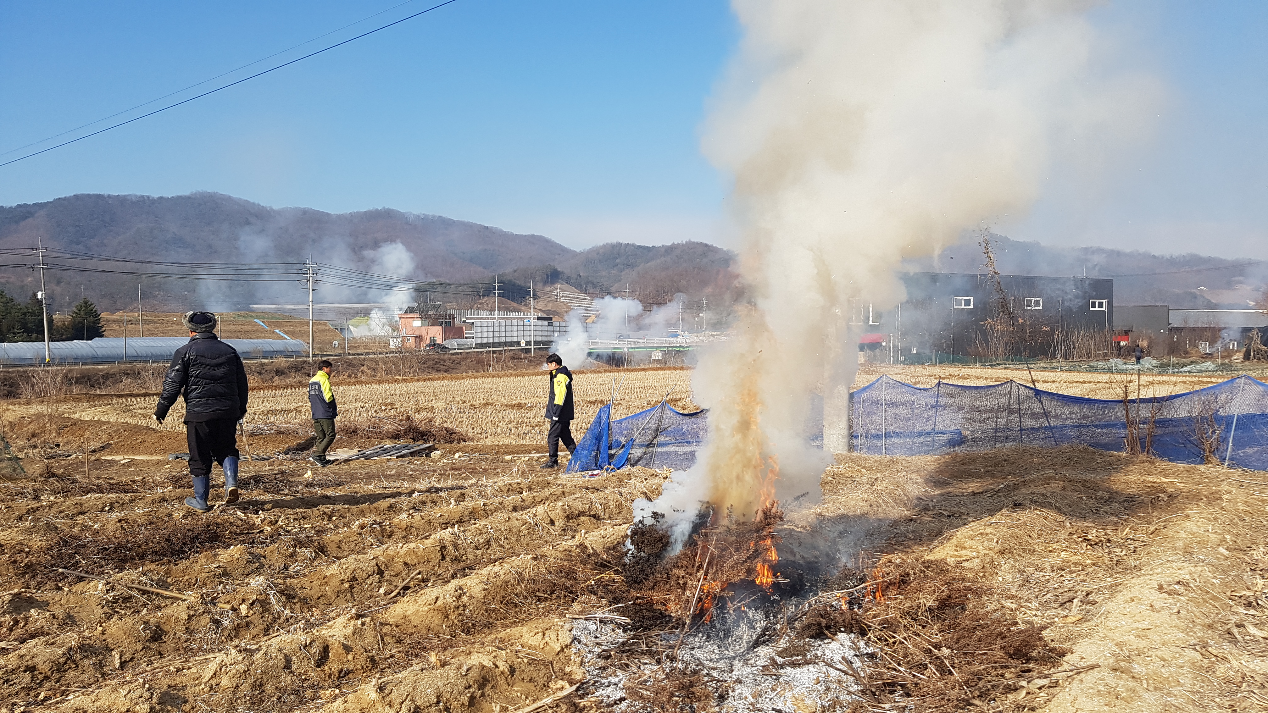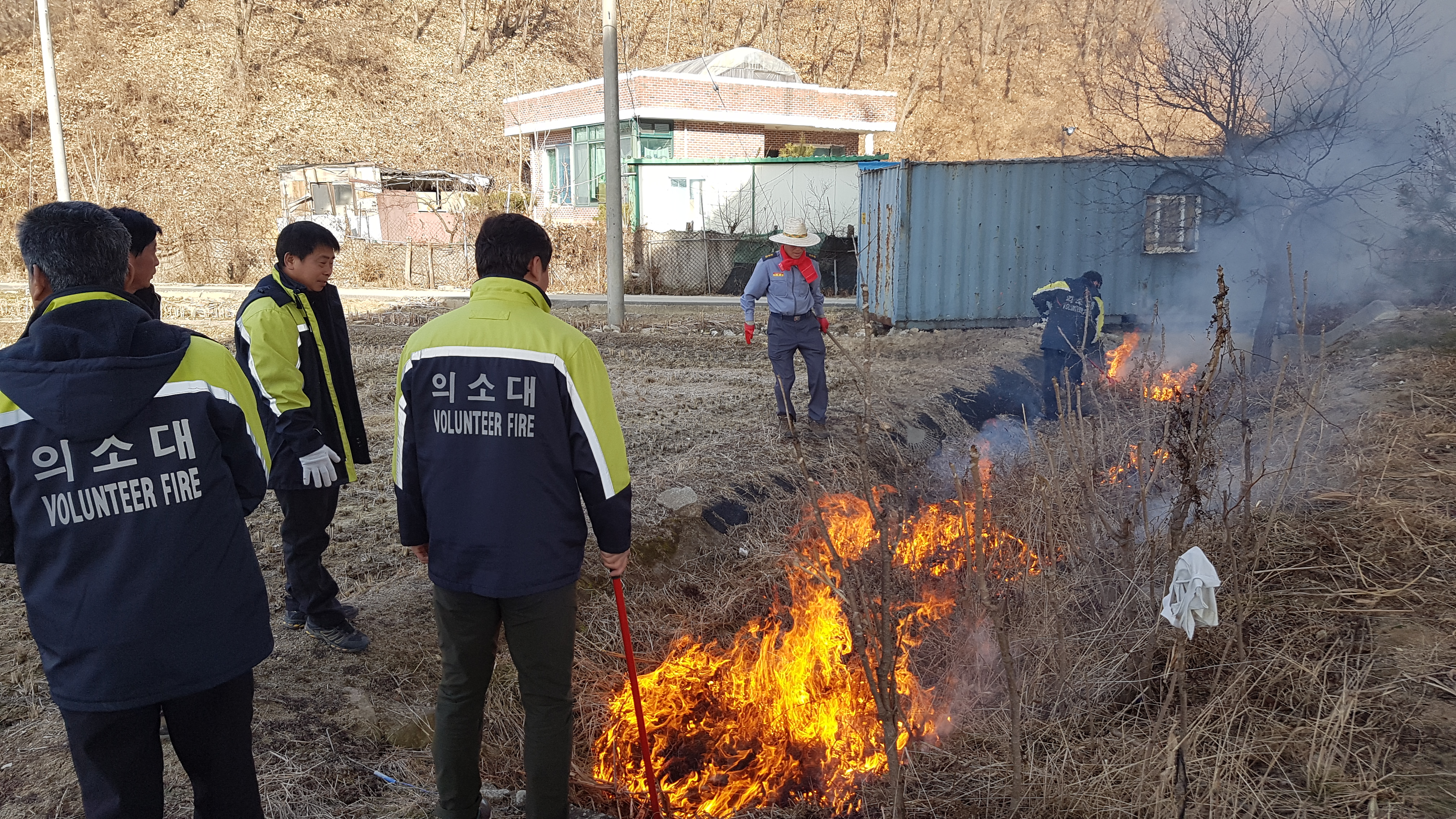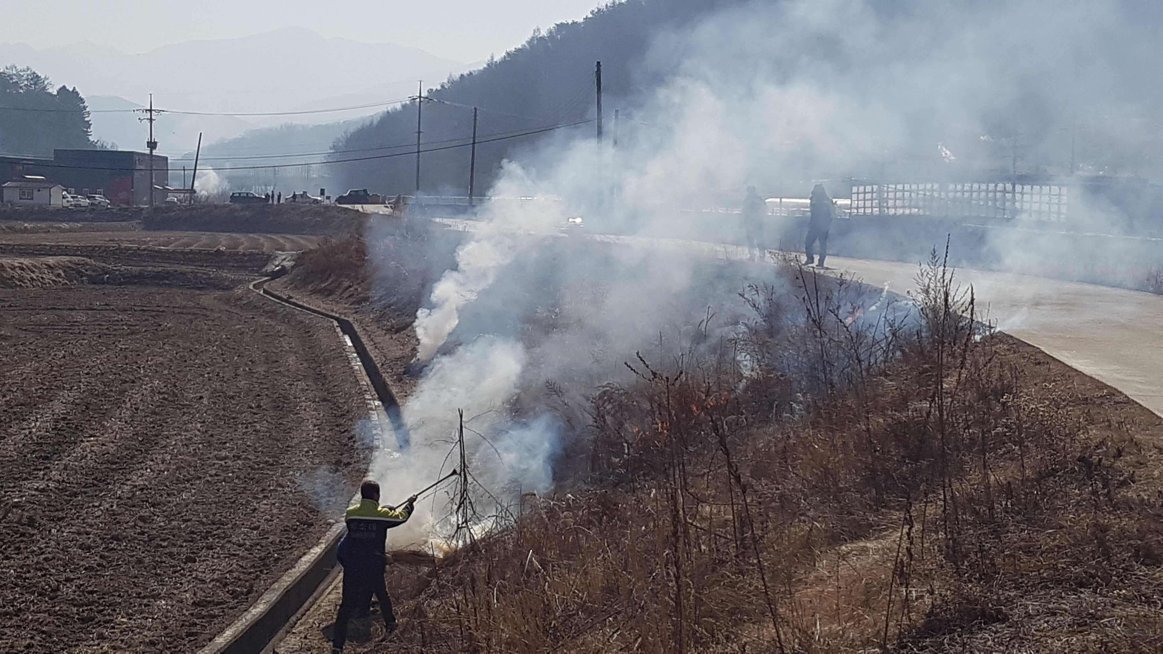 흥업남성의용소방대 " 사제리 논,밭두렁 공동 소각" 산불예방 활동