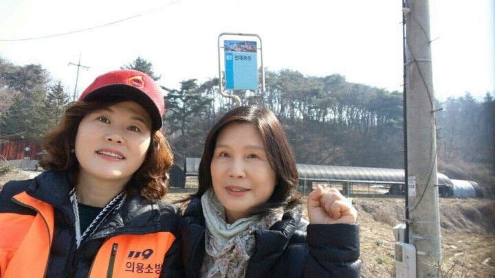 # 번재마을 앞에서 도로공사 하시는분과 함께 산불홍보~~~