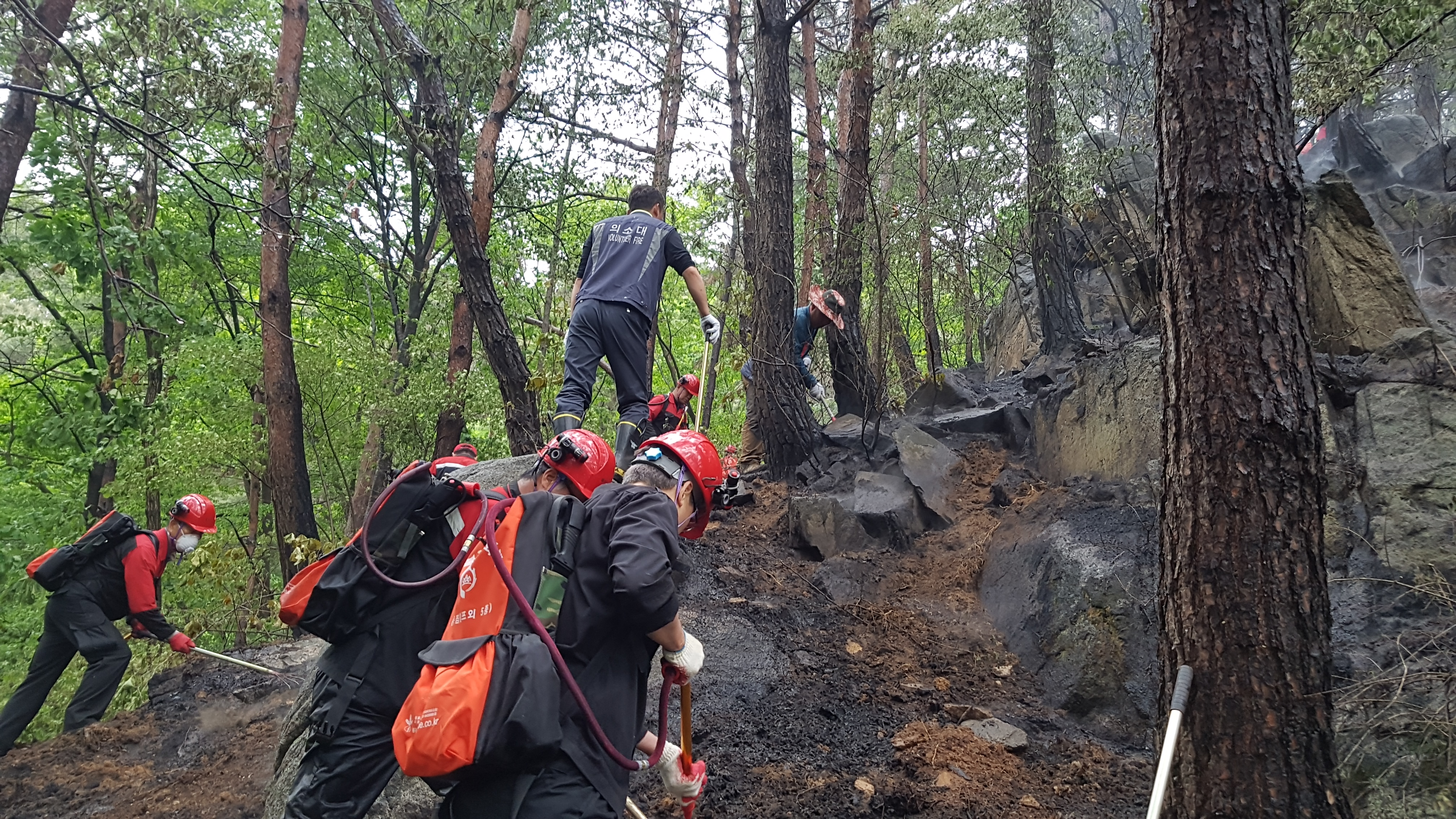 흥업남성의용소방대 "흥업쉼터 뒤 (금성산)"화재출동