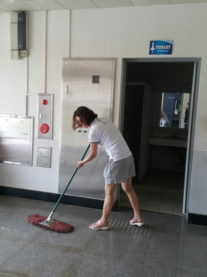 내용: 체육관 실내 바닥청소 및 입구먼지제거 쓰레기분리수거