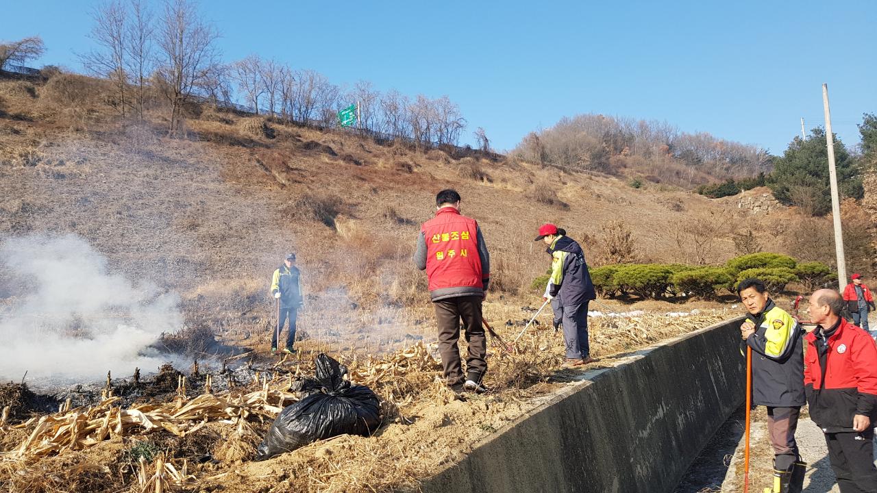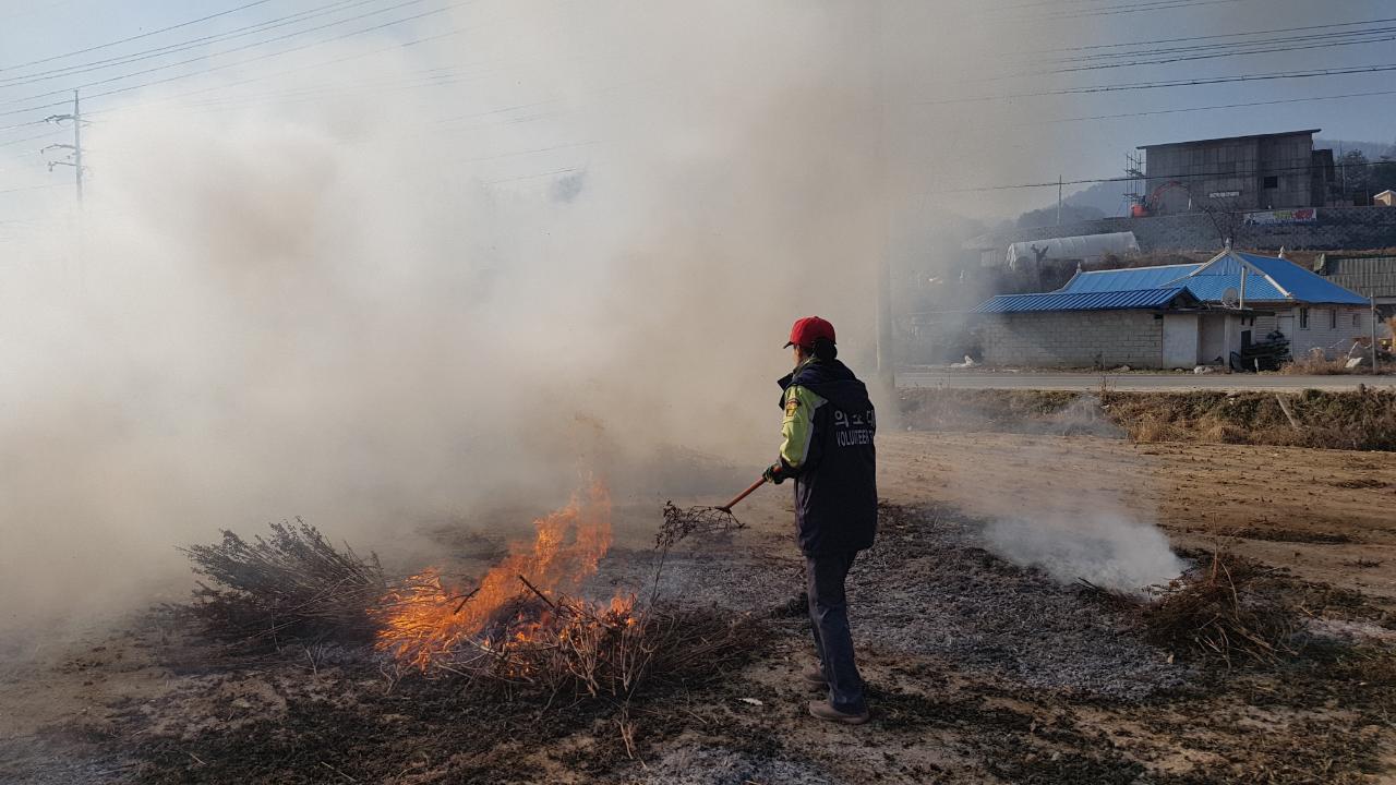 흥업리 논부산물 태우기 활동 을 하고 화재 예방 황동도 함