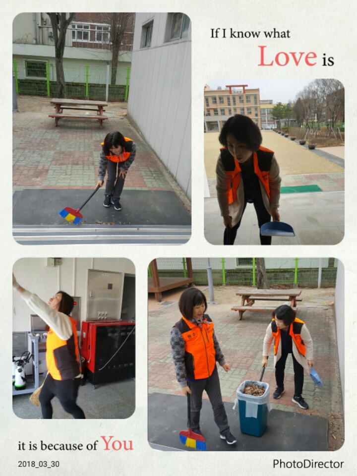 내용: 체육관 실내 바닥청소 및 입구먼지제거 쓰레기분리수거