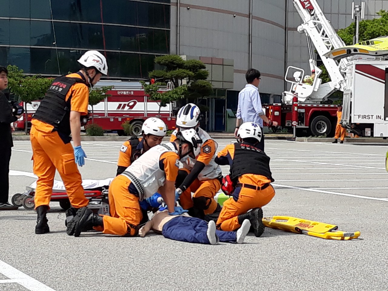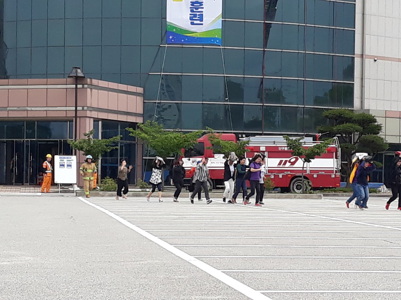 지진및 재난에대비 대피 훈련에 참가함