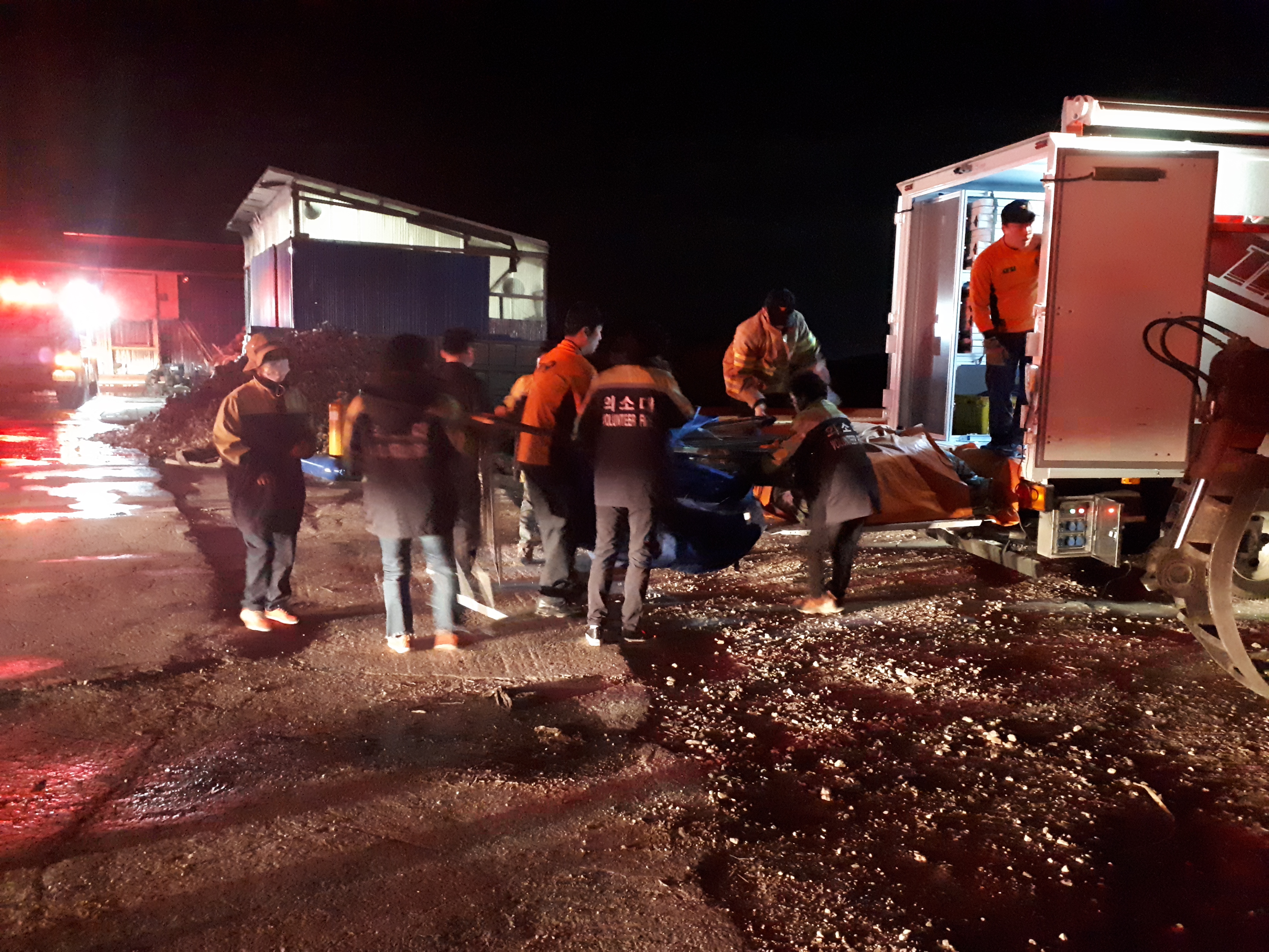 내용 : 원탁기업 화재 출동 소방대원 보조 활동 및 잔불정리