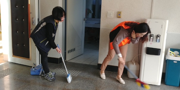 내용: 체육관 실내 바닥청소 및 입구먼지제거 쓰레기분리수거